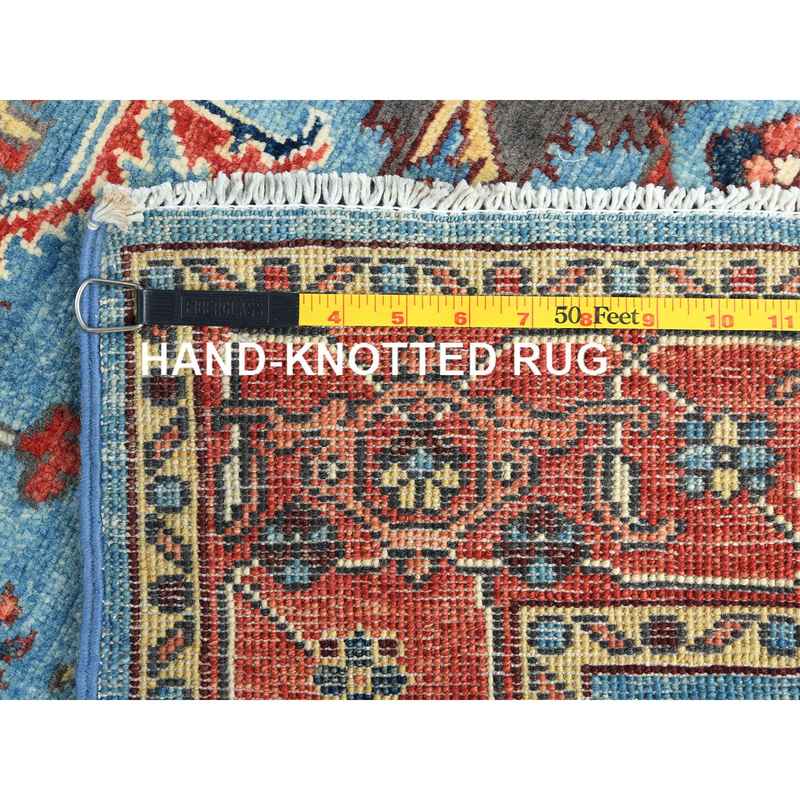 4’x5’9″ Air Force Blue, Afghan Peshawar with All Over Heriz Design Vegetable Dyes, Natural Wool Hand Knotted, Oriental Rug Sh82830