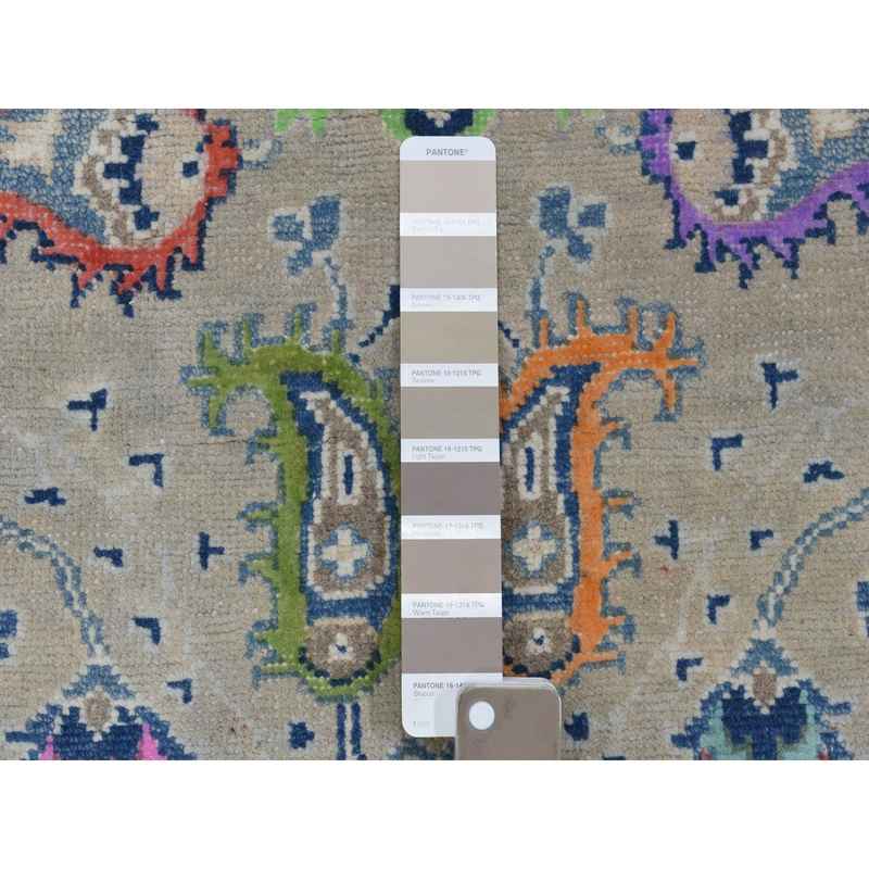 4’x5’9″ Colorful Gray Fusion Kazak Pure Wool Geometric Design Hand Knotted Oriental Rug Sh53807