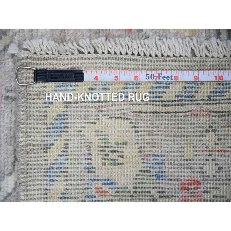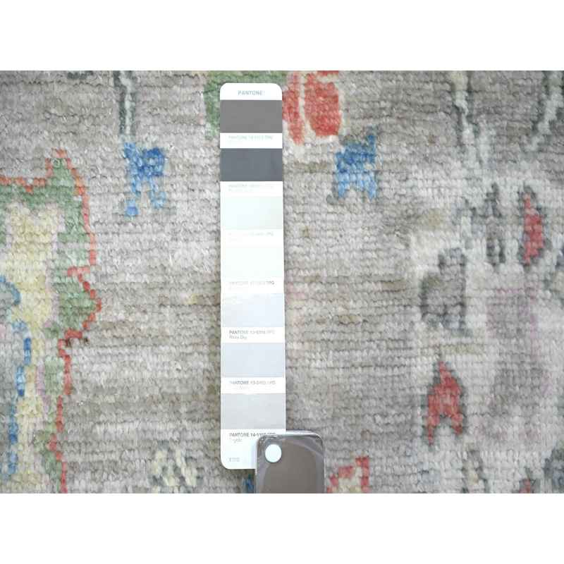 4’x5’9″ Gray, Afghan Angora Oushak with Floral Motifs, Vegetable Dyes, Pure Wool, Hand Knotted Oriental Rug Sh73417