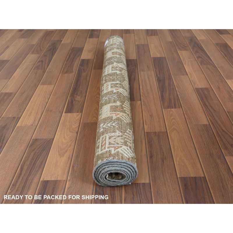 4’x5’9″ Green With Colorful Tassles Hand Knotted Super Kazak Khorjin Design Natural Wool Oriental Rug Sh60270