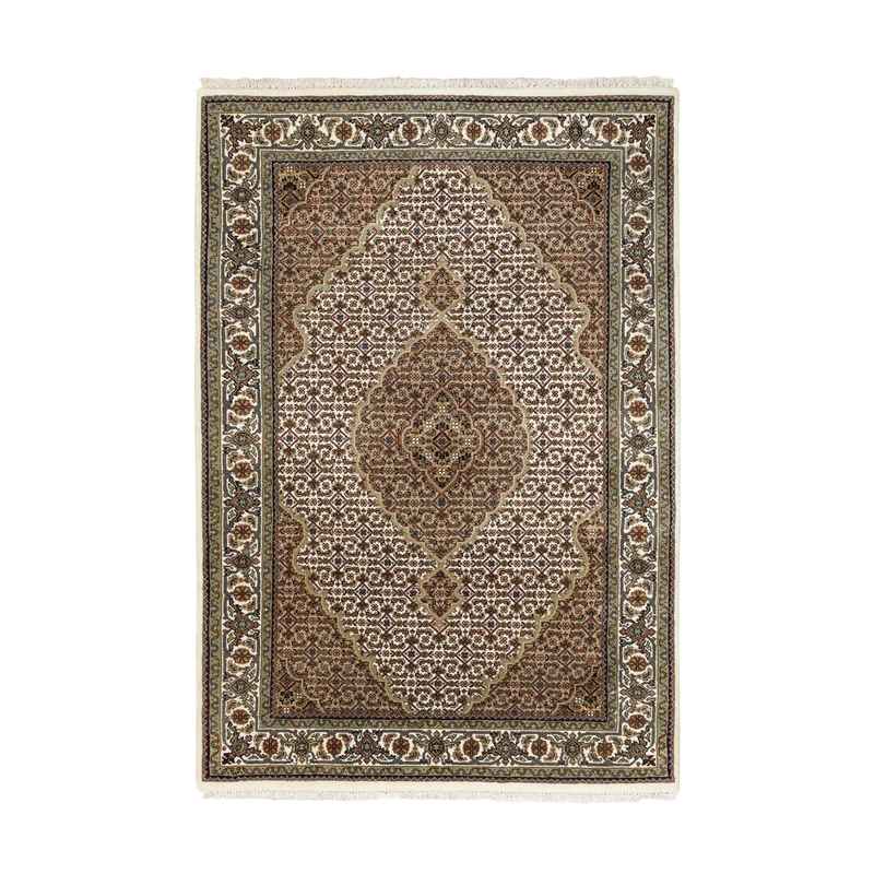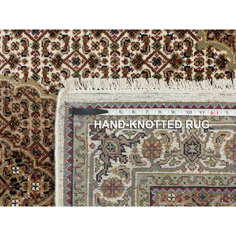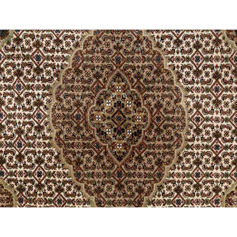 4’x5’9″ Hand Knotted Wool Ivory Fish Design Tabriz Mahi Oriental Rug Sh58705
