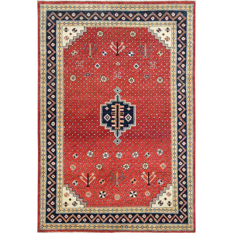 4’x5’9″ Imperial Red, Special Kazak with Large Medallion, Natural Dyes, Organic Wool, Hand Knotted, Oriental Rug Sh82949