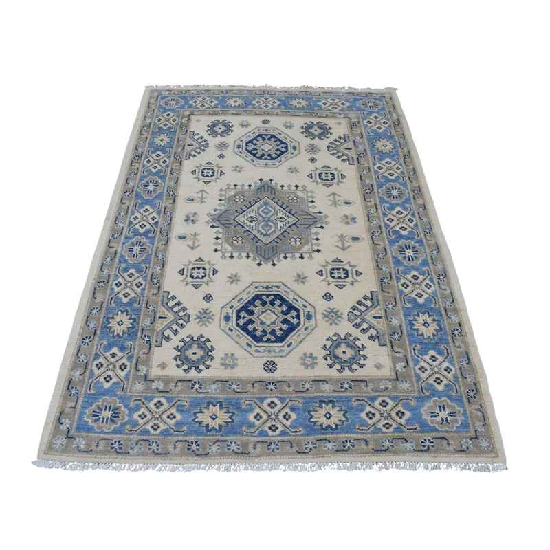 4’x5’9″ Ivory Afghani Wool Vintage Look Kazak Hand Knotted Oriental Rug Sh54784
