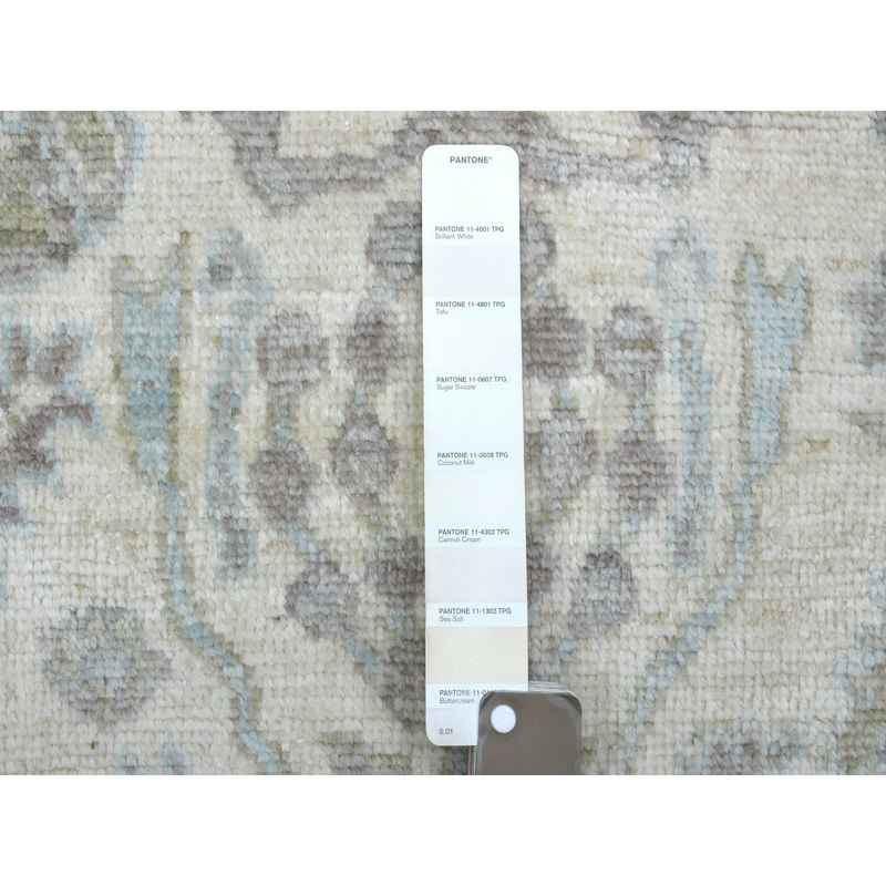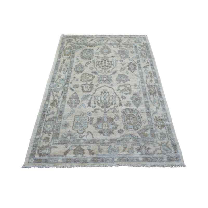 4’x5’9″ Ivory Angora Oushak With Colorful Leaf Design Natural Dyes, Afghan Wool Hand Knotted Oriental Rug Sh71759