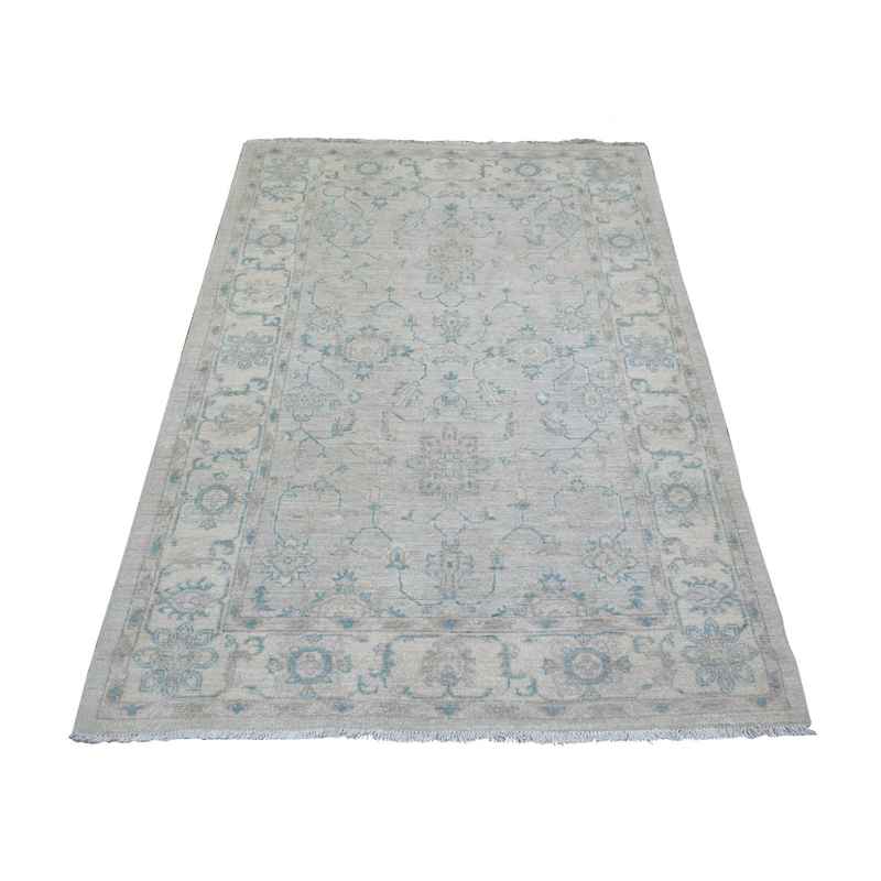 4’x5’9″ Ivory White Wash Peshawar, Pure Wool Natural Dyes Hand Knotted, Oriental Rug Sh71733