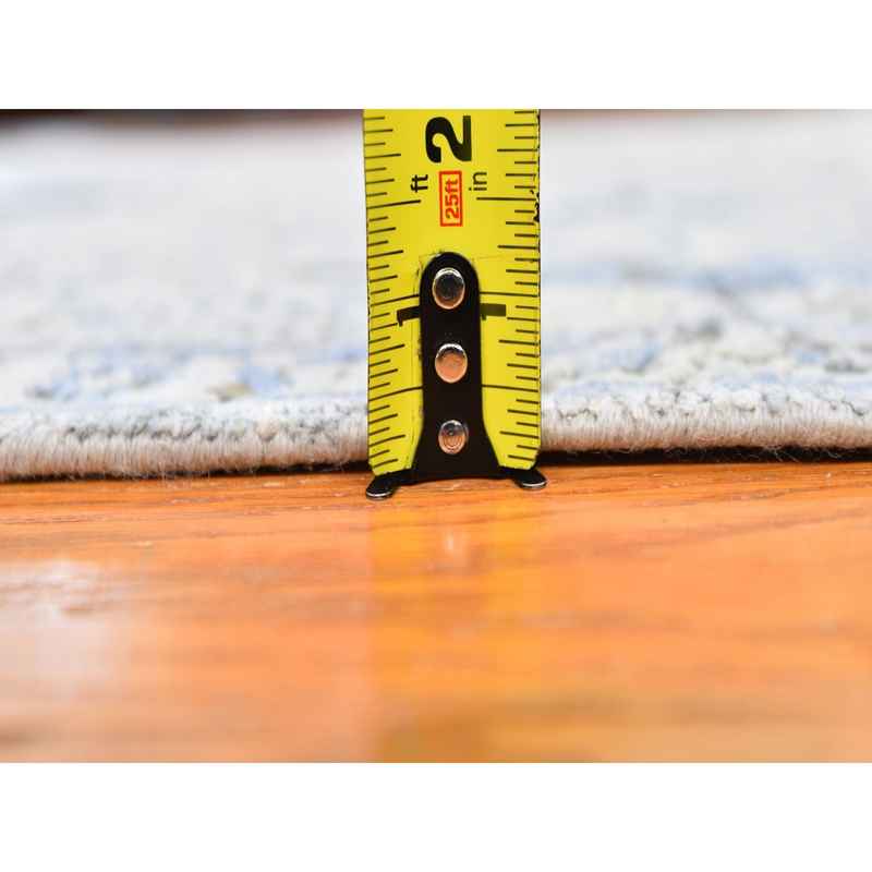 4’x6′ Blue Pure Silk with Textured Wool Distressed Oushak Hand Knotted Oriental Rug Sh59750