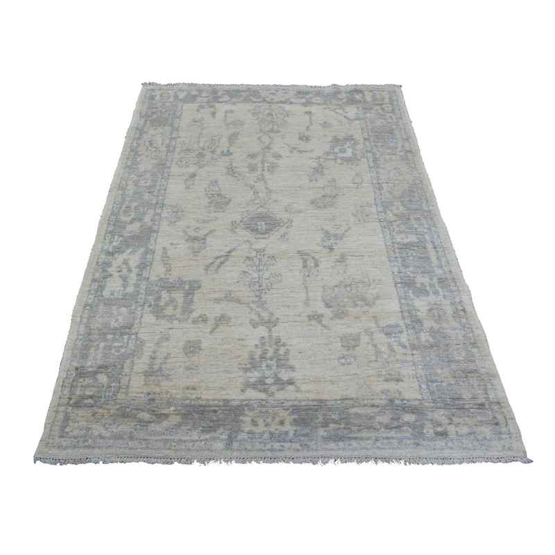 4’x6′ Ivory Angora Oushak with All Over Design Hand Knotted Soft Afghan Wool Oriental Rug Sh70040