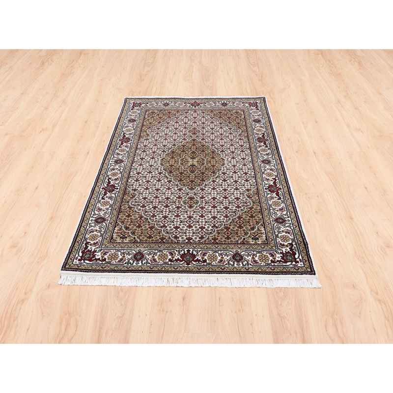 4’x6′ Ivory Tabriz Mahi Fish Medallion Design Wool Hand Knotted Oriental Rug Sh62490