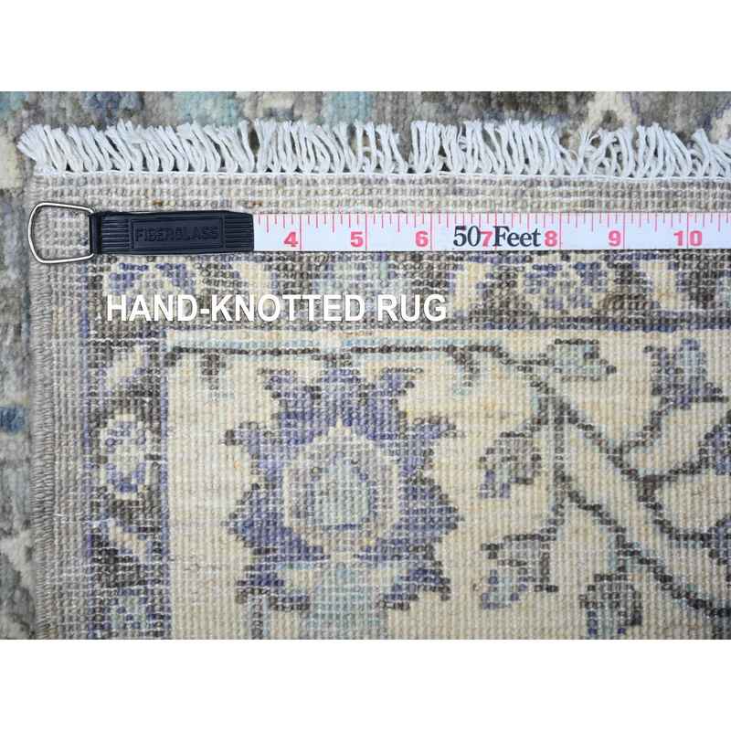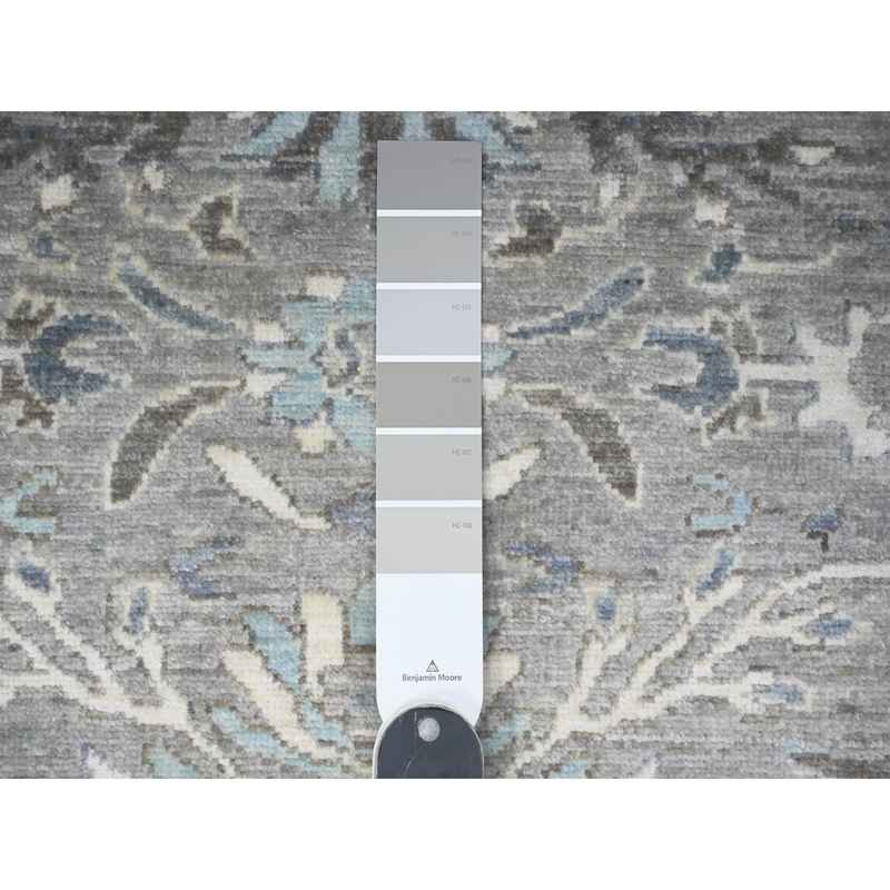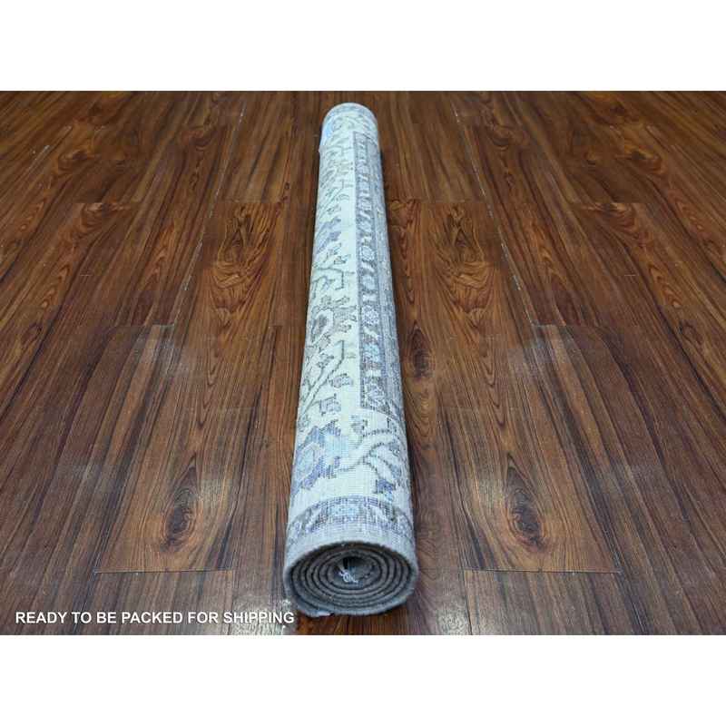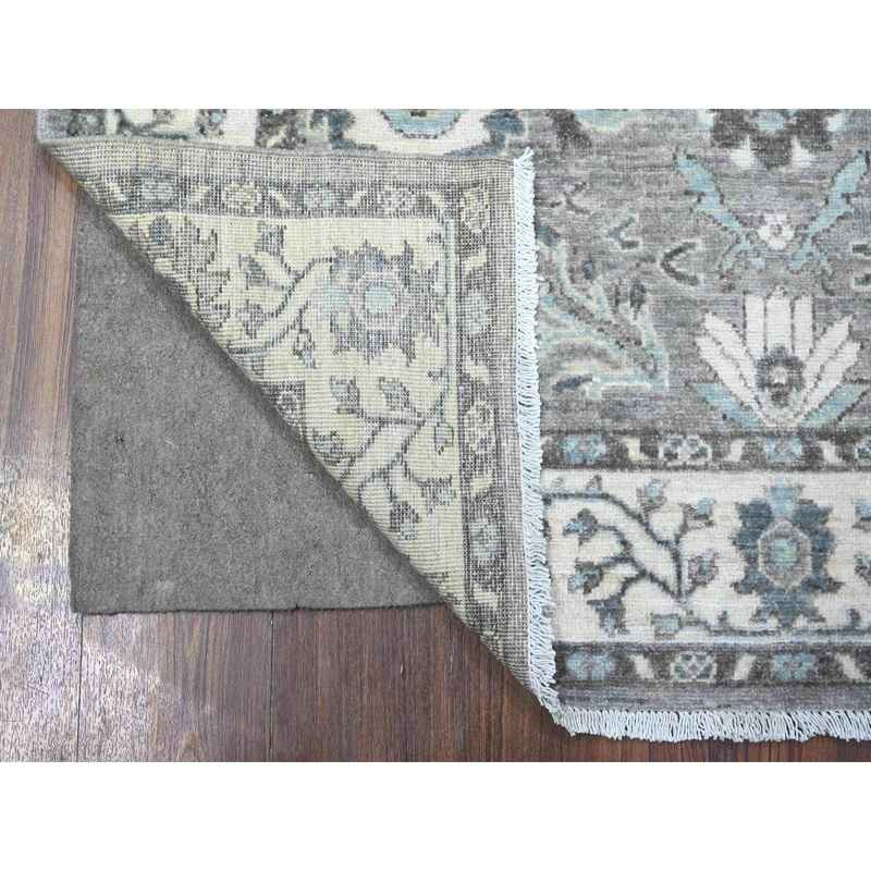 4’x6′ Jubilee Gray With Heron White, Hand Knotted Organic Wool Vegetable Dyes, Dense Weave, Fine Peshawar Heriz, Sickle Leaf Design, Oriental Rug Sh88167
