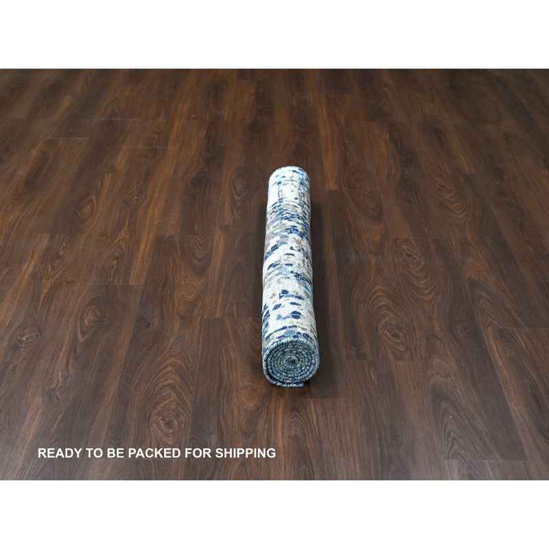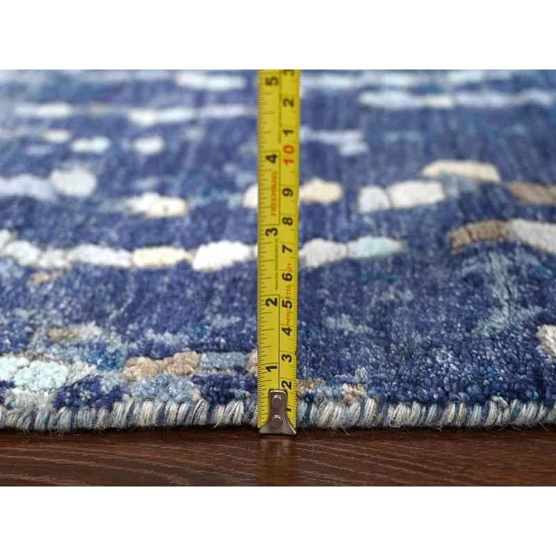 4’x6′ Millennium Blue, Modern Mosaic Design with Mix of Gold, Denser Weave, Wool and Silk, Persian Knot, Hand Knotted, Oriental Rug Sh84515