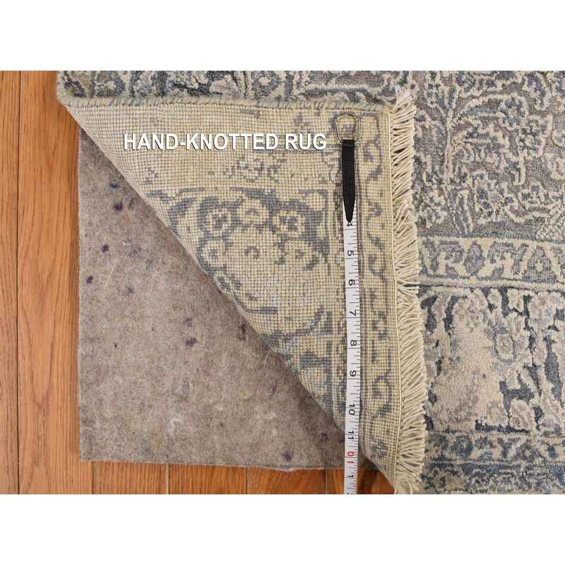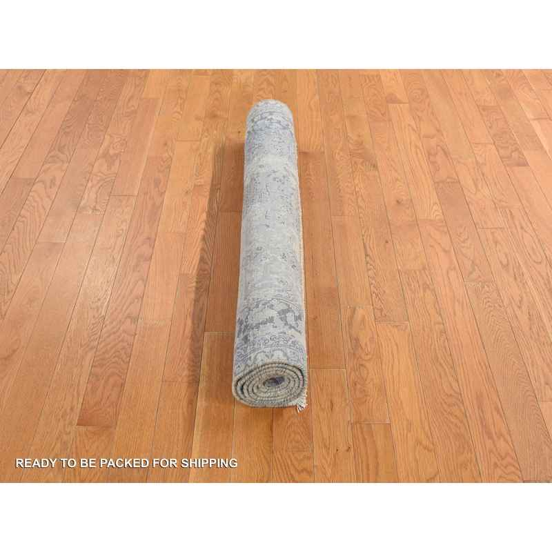 4’x6′ Spruce Blue, Wool with Pure Silk, Broken And Erased Persian Design, Hand Knotted Oriental Rug Sh78222