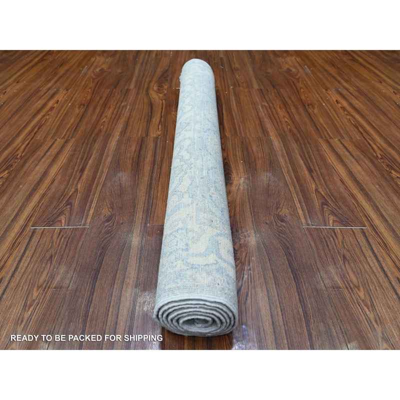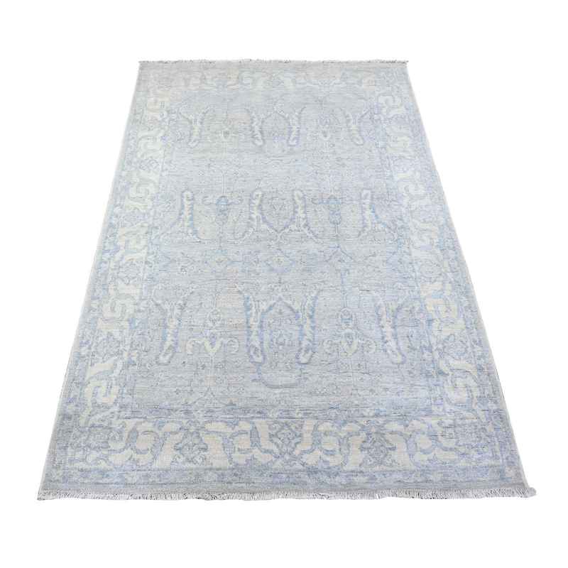 4’x6′ Stone Blue, White Wash Peshawar, Organic Wool, Vegetables Dyes, Hand Knotted, Oriental Rug sh88423