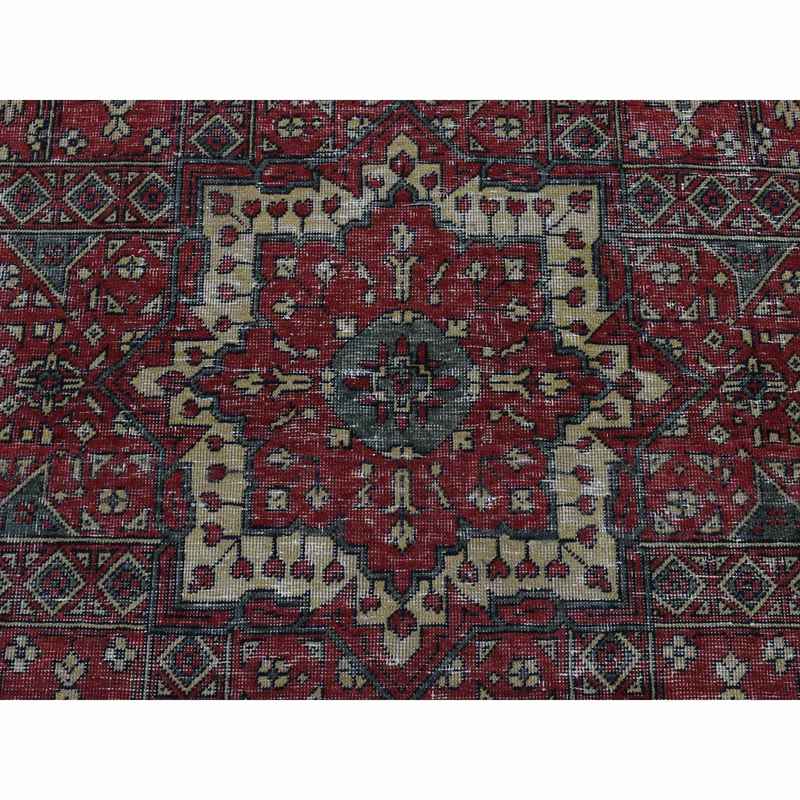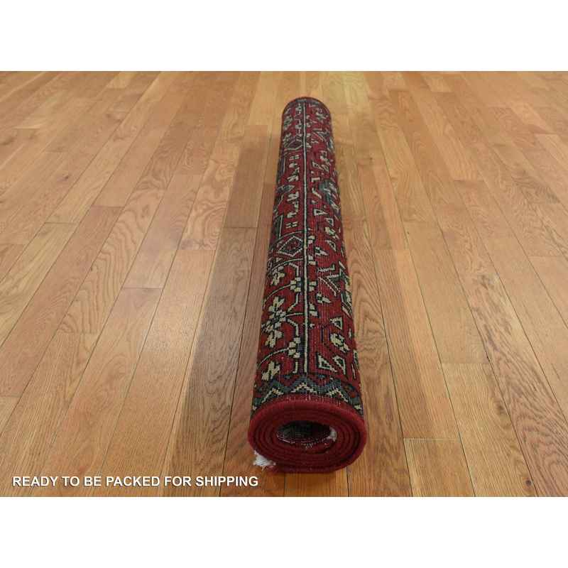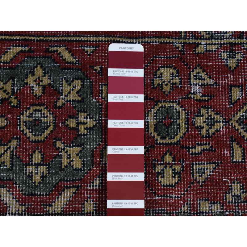 4’x6′ Vermilion Red, Vintage Look Mamluk, Zero Pile, Shaved Low, Worn Wool, Hand Knotted, Oriental Rug Sh87611