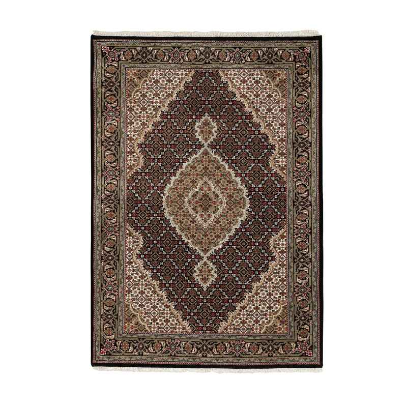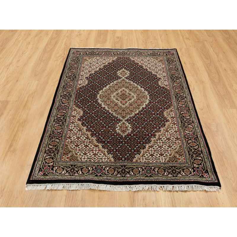4’x6′ Wool Black Hand Knotted Fish Design Tabriz Mahi Oriental Rug Sh58692