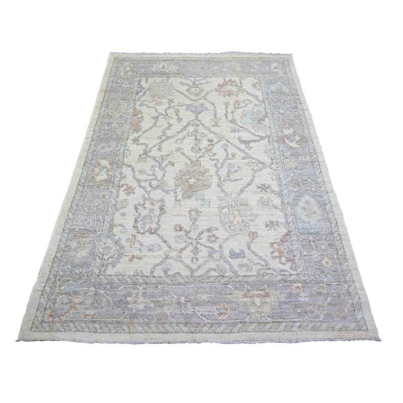 4’x6’1″ Cream Color, Afghan Angora Oushak with All Over Vines Design Natural Dyes, 100% Wool Hand Knotted, Oriental Rug Sh73844