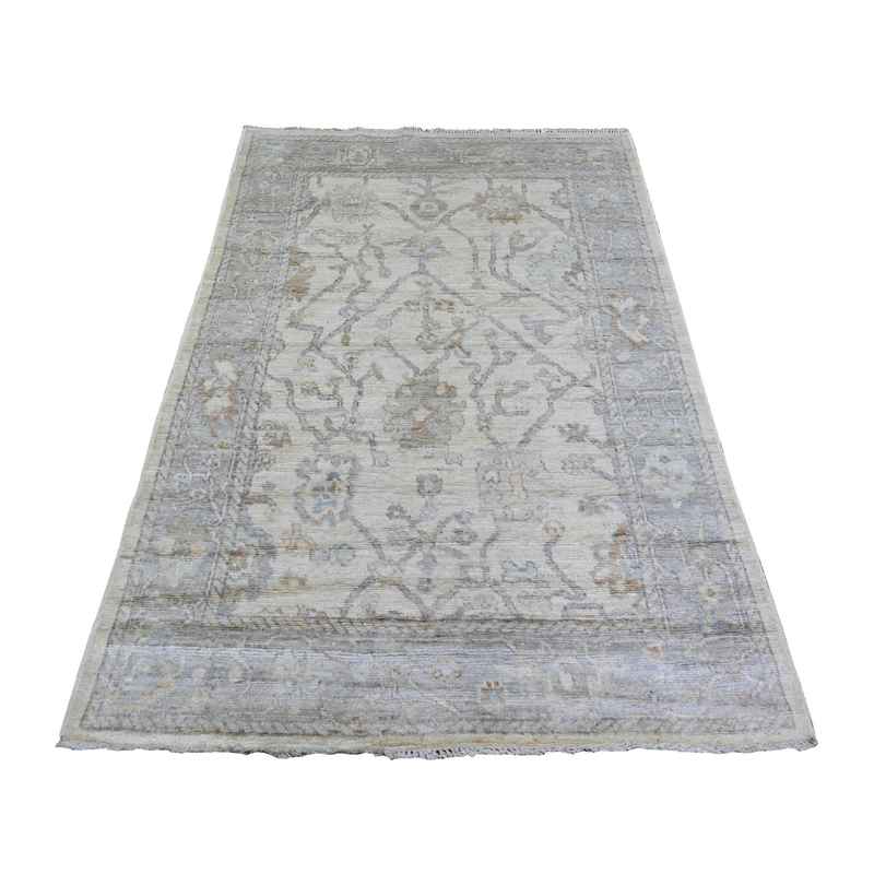 4’x6’1″ Ivory, Hand Knotted Afghan Angora Oushak with All Over Design, Vegetable Dyes Organic Wool, Oriental Rug Sh73420