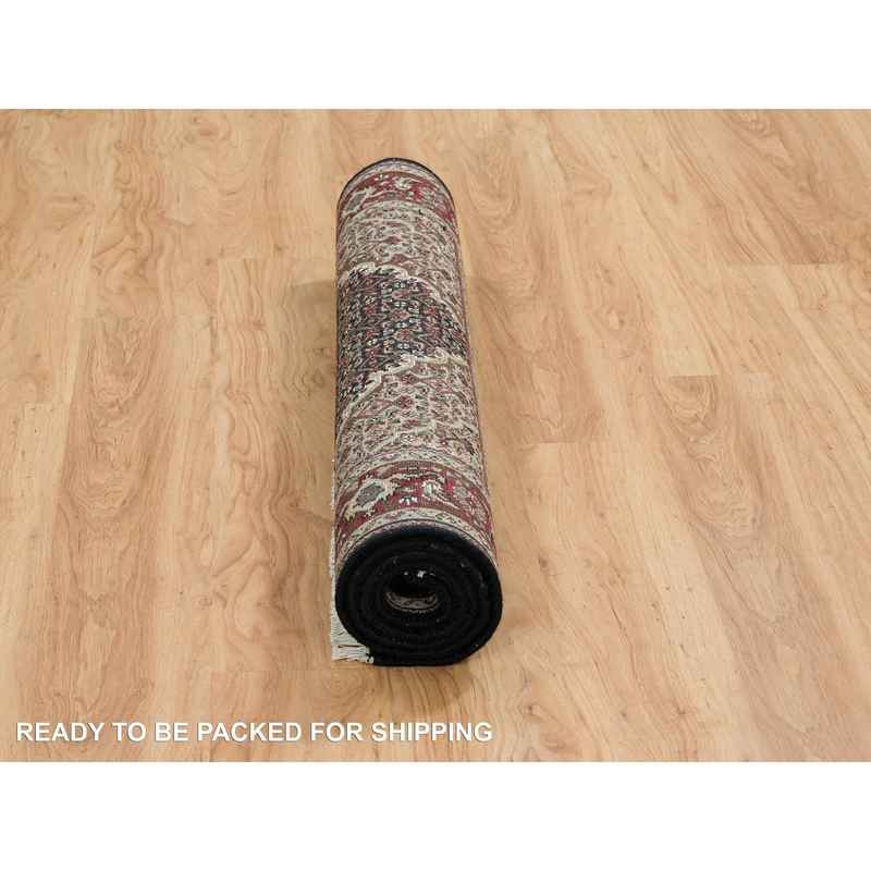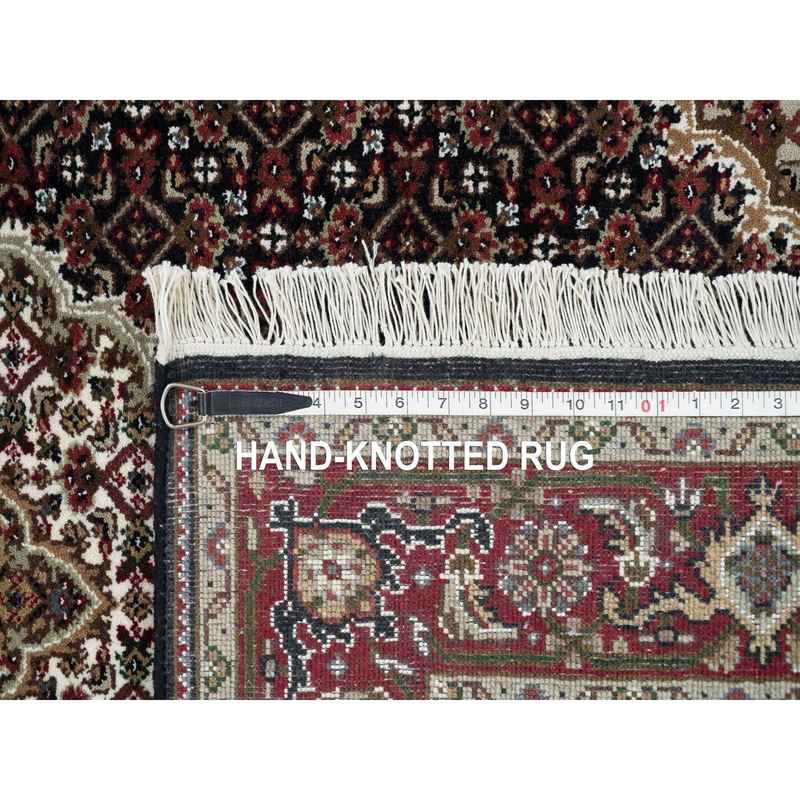 4’x6’1″ Rich Black, Tabriz Mahi with Fish Medallion Design, 175 KPSI, Hand Knotted, 100% Wool, Oriental Rug Sh65099