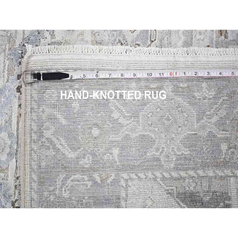 4’x6’2″ Hand Knotted Pure Silk And Textured Wool Oushak With Geometric Motif Oriental Rug Sh59275