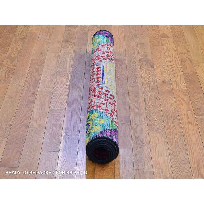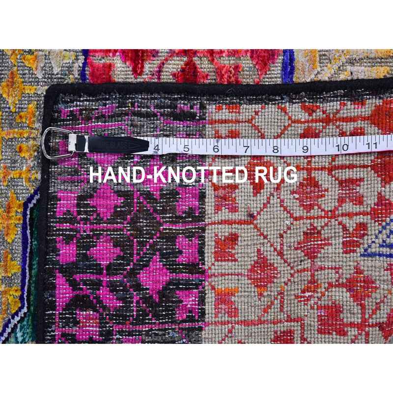 4’x6’2″ Sari Silk with Textured Wool Mamluk Design Colorful Hand Knotted Oriental Rug Sh66495