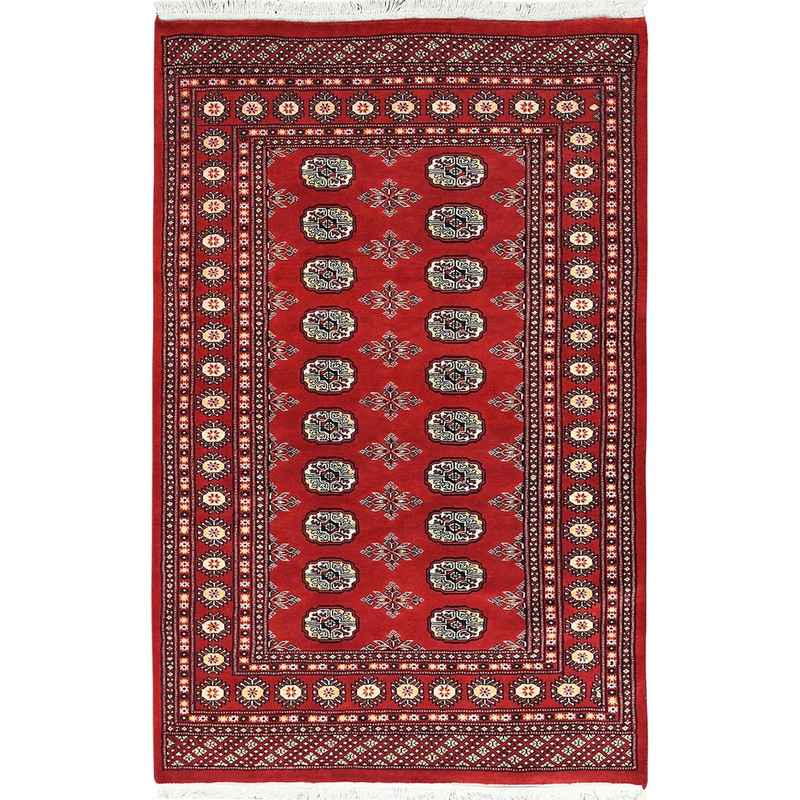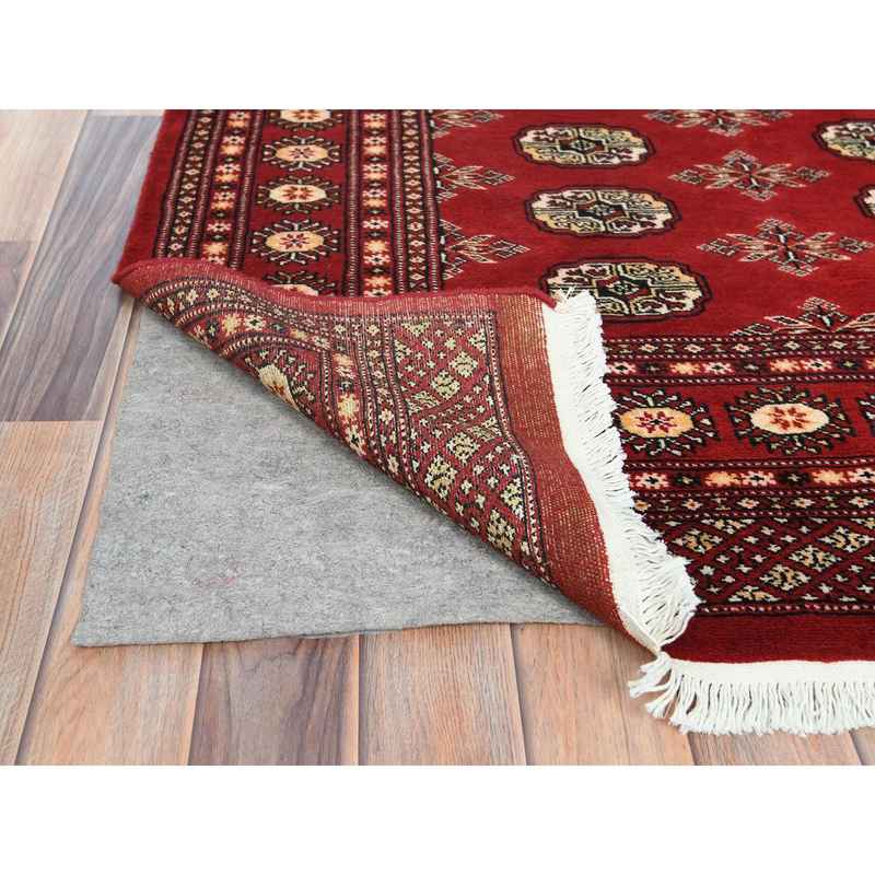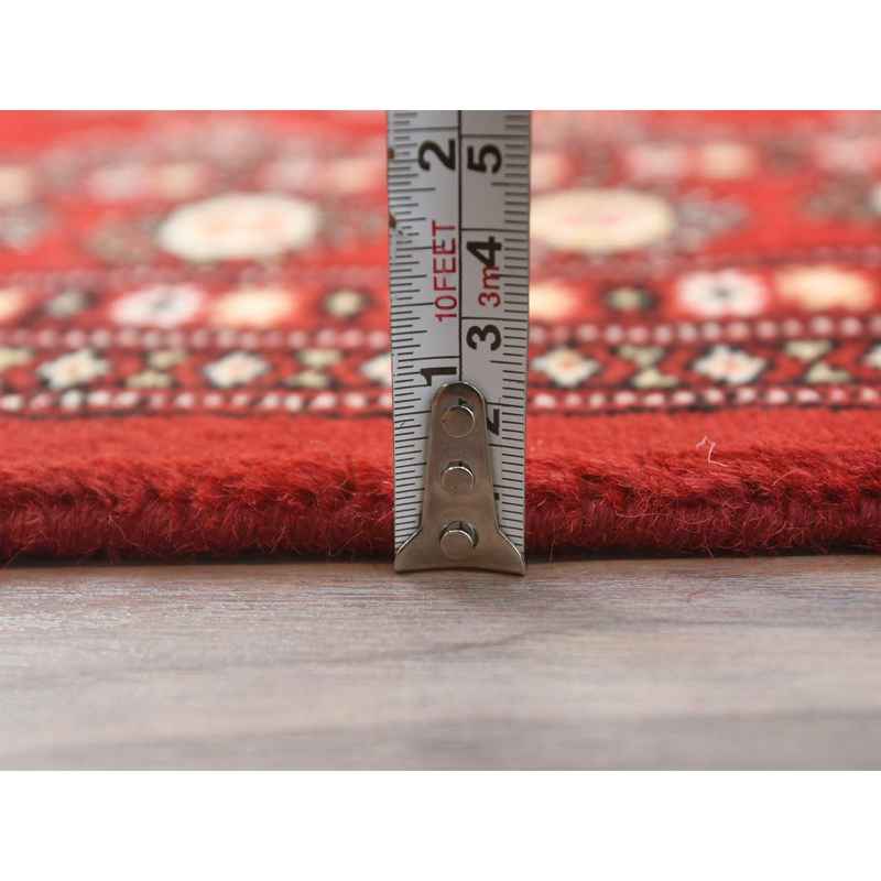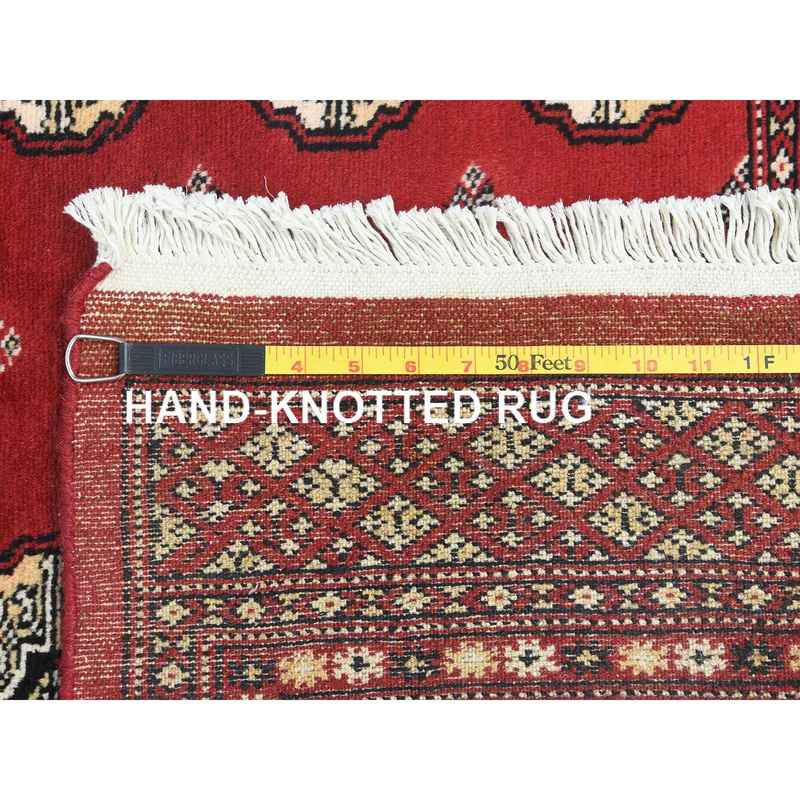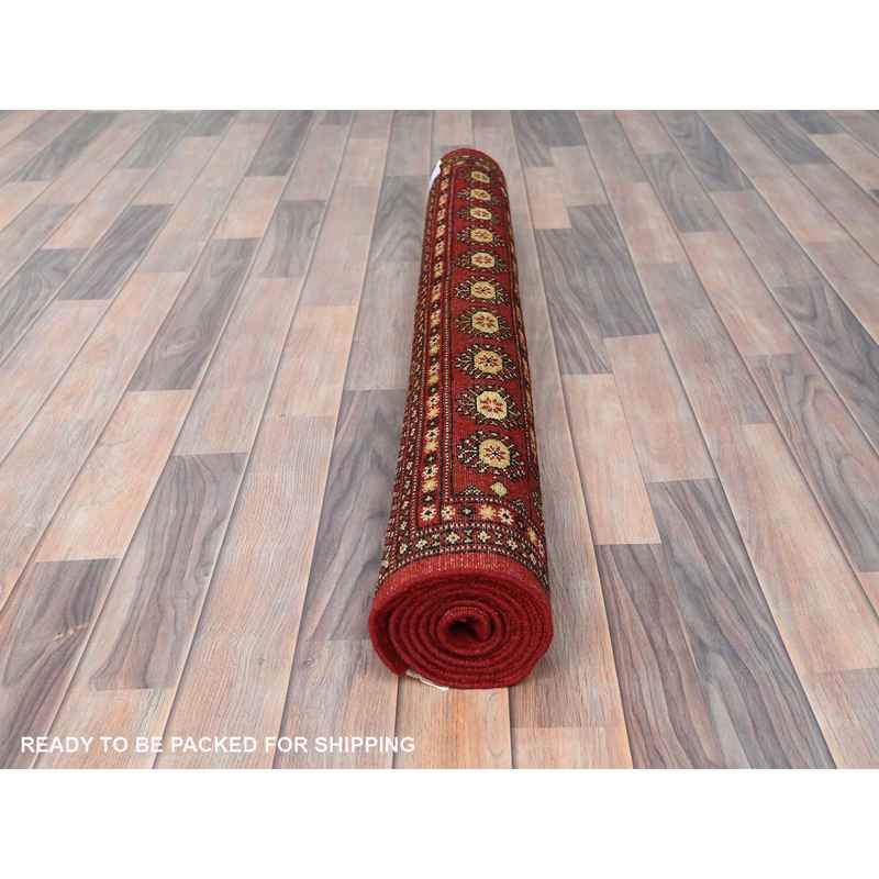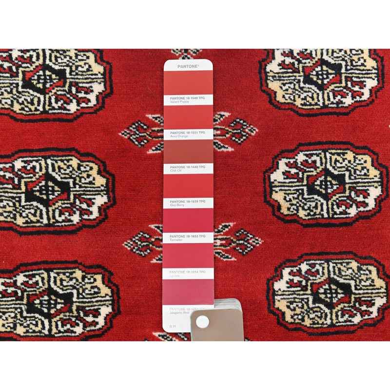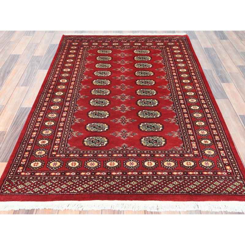 4’x6’3″ Deep and Rich Red, Mori Bokara with Geometric Medallions Design, Extra Soft Wool Hand Knotted, Oriental Rug Sh82418