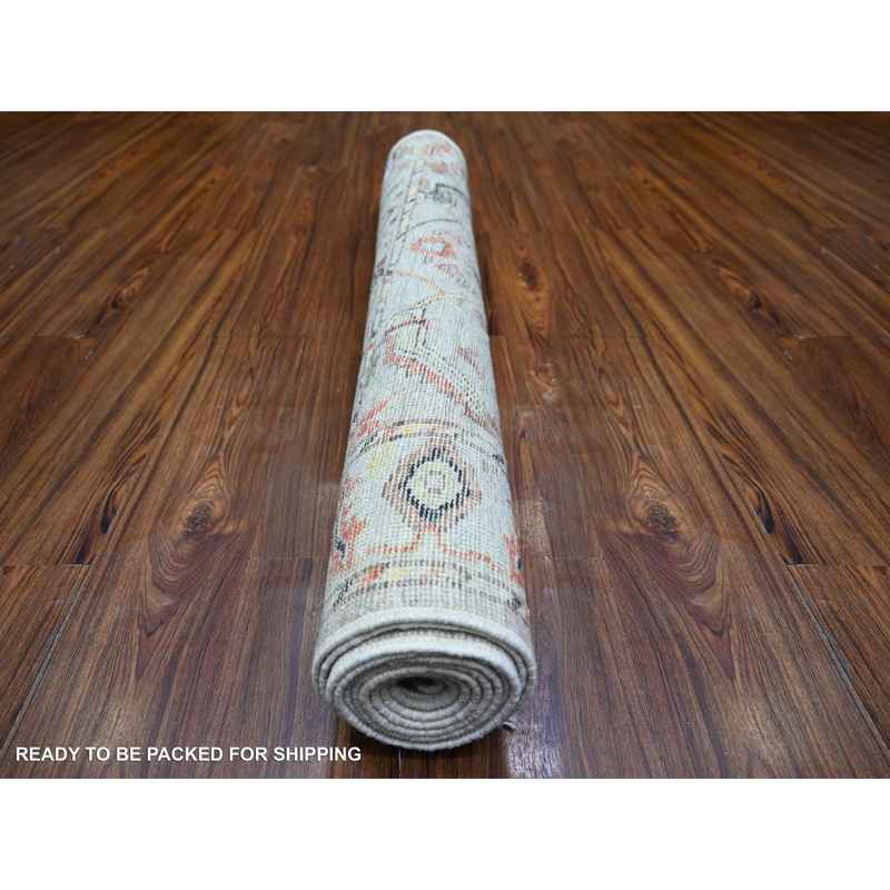 4’x9’10” Silver Gray, Hand Knotted Afghan Angora Oushak with All Over Pattern, Natural Dyes 100% Wool, Wide Runner Oriental Rug Sh73588
