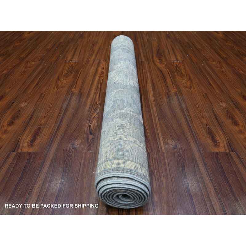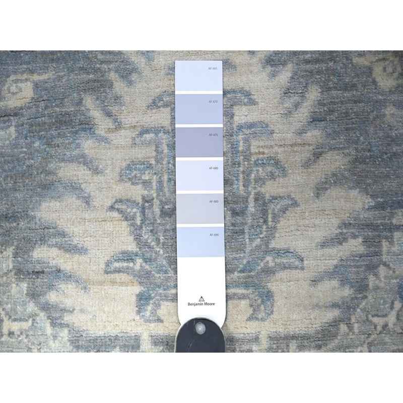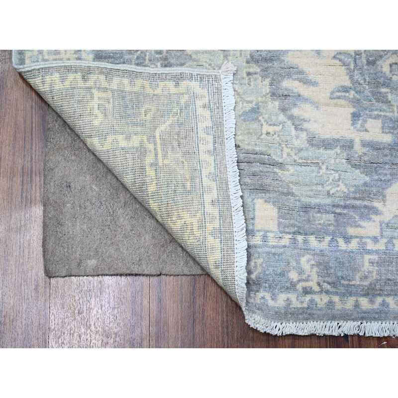 4’x9’2″ Nickel Gray, Organic Wool, Fine Peshawar with Heriz Design, Hand Knotted, Vegetable Dyes, Dense Weave, Wide Runner Oriental Rug Sh88470