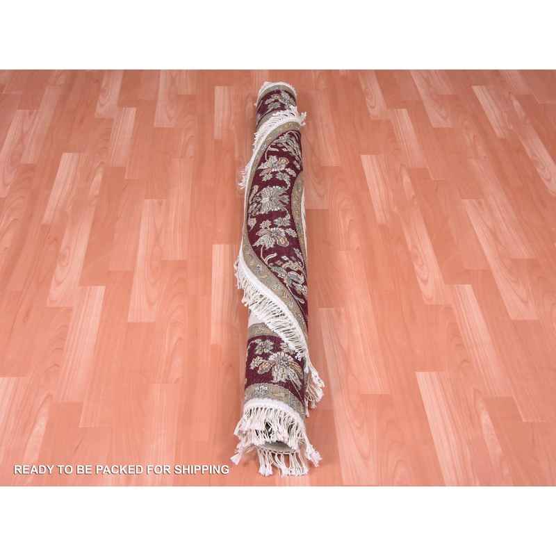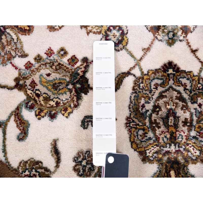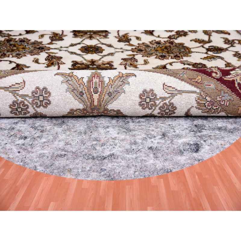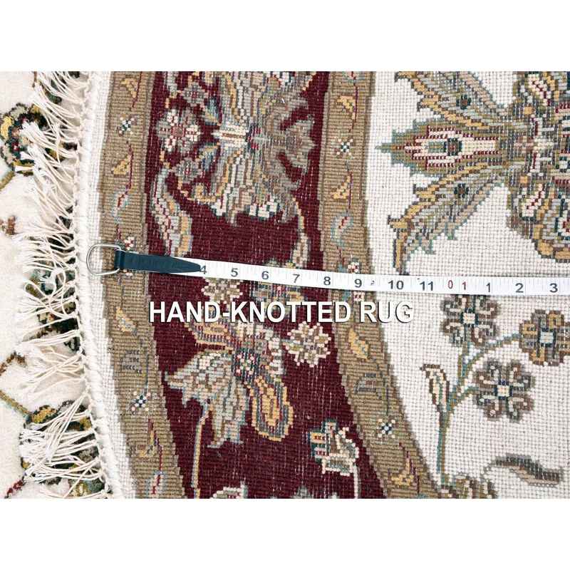 5’2″x5’2″ Ivory, Rajasthan, All Over Leaf Design, Thick and Plush, Wool and Silk, Hand Knotted, Oriental, Round Rug Sh75061