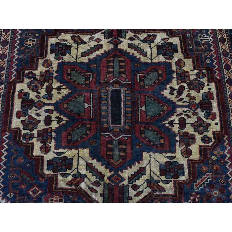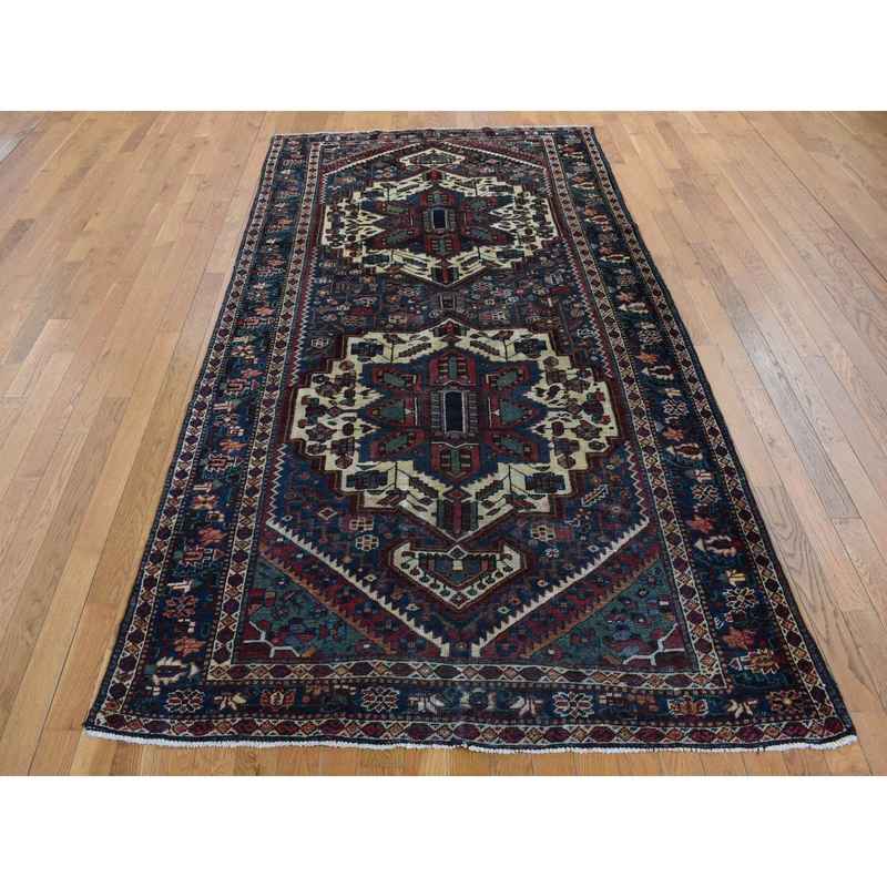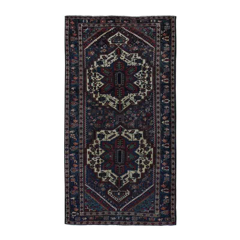 5’2″x9’9″ Prussian Blue, Vintage Persian Bakhtiari, Even Wear, Pure Wool, Hand Knotted, Wide Runner Oriental Rug Sh87375