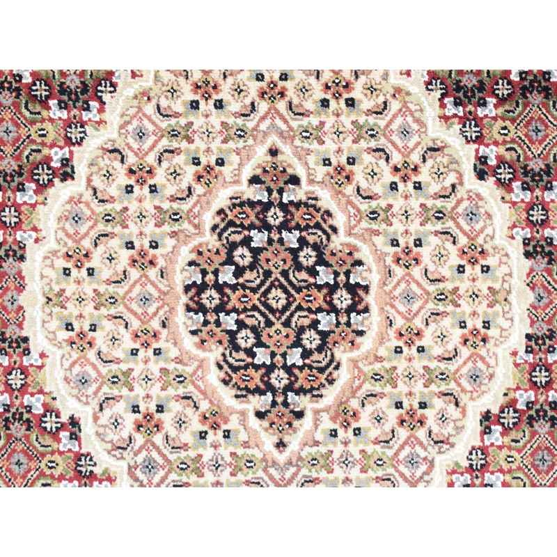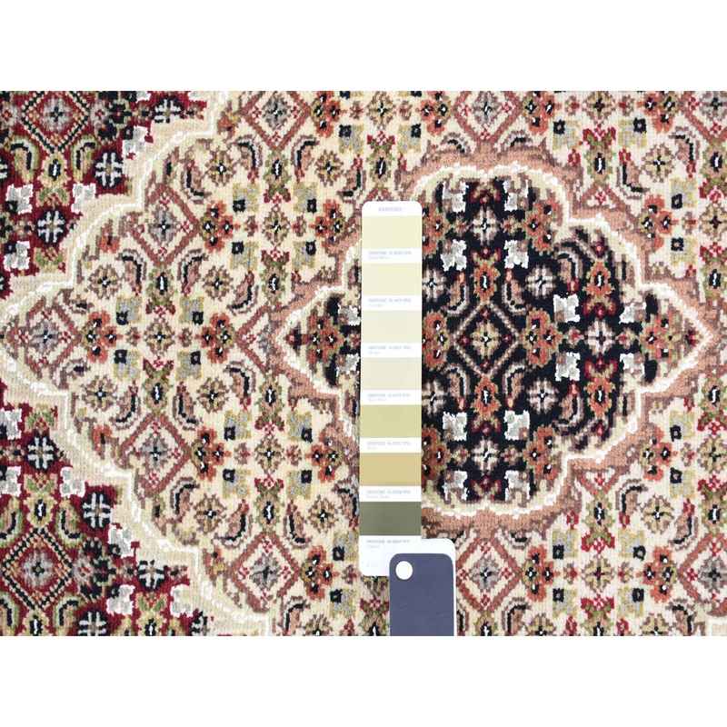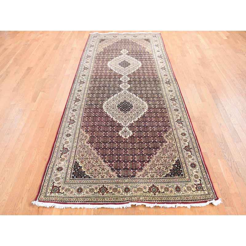5’x12’9″ Burgundy Red, Tabriz Mahi, Large Medallions, Pure Wool, Hand Knotted, Gallery Wide Runner, Oriental Rug Sh87985