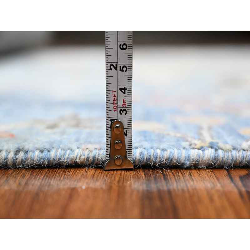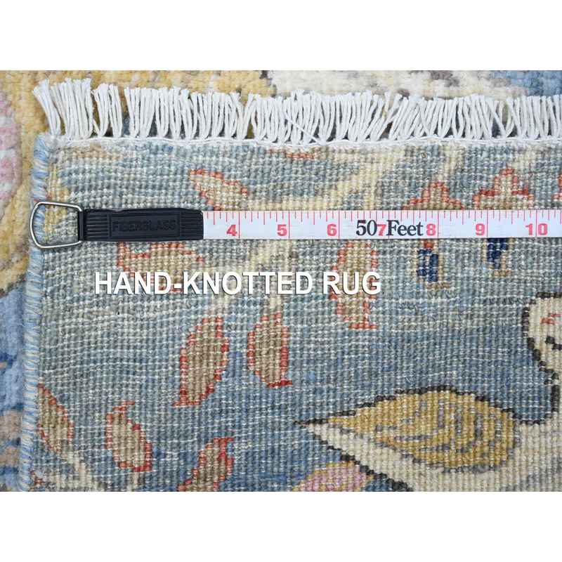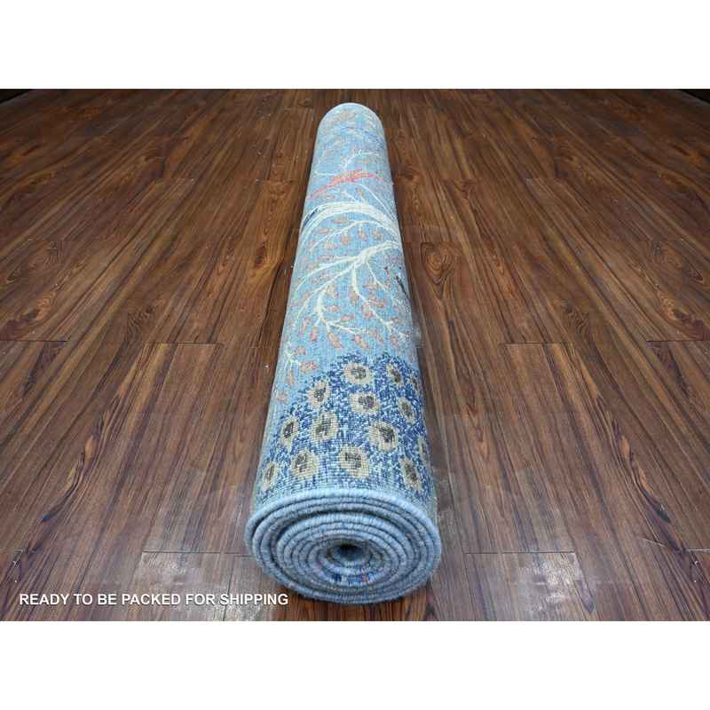 5’x14’8″ Crayola Blue, Hand Knotted, Natural Dyes, Soft and Shiny Wool, Birds of Paradise, Tree of Life Afghan Peshawar Wide Runner Oriental Rug Sh89697