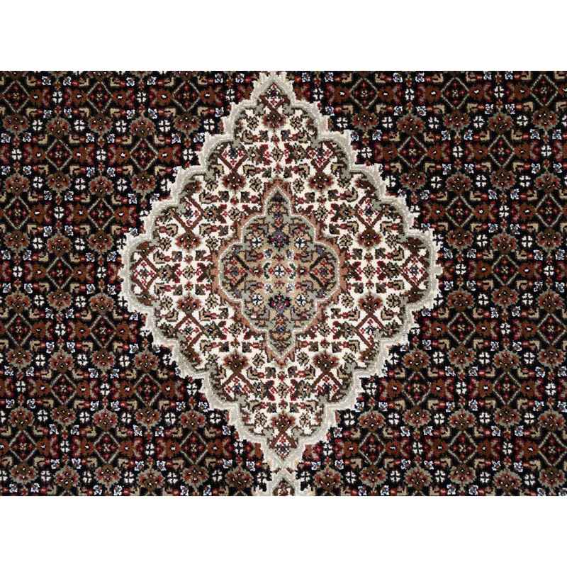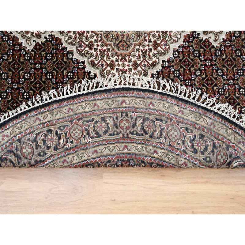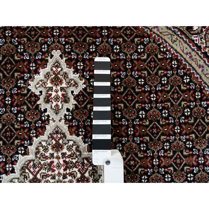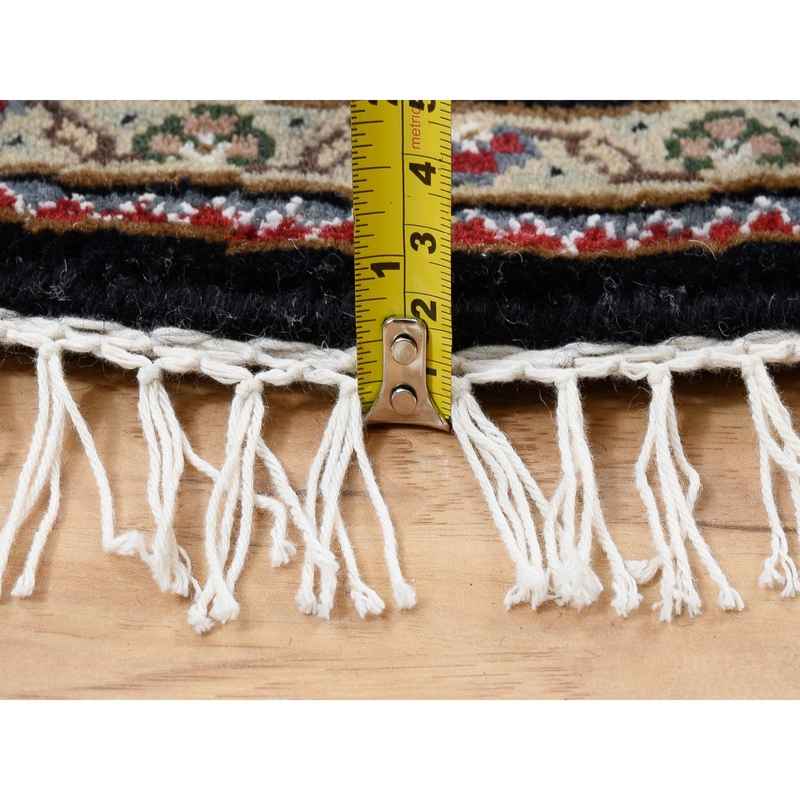 5’x5′ 175 KPSI Hand Knotted Rich Black Tabriz Mahi with Fish Medallion Design Wool Oriental Round Rug Sh63543