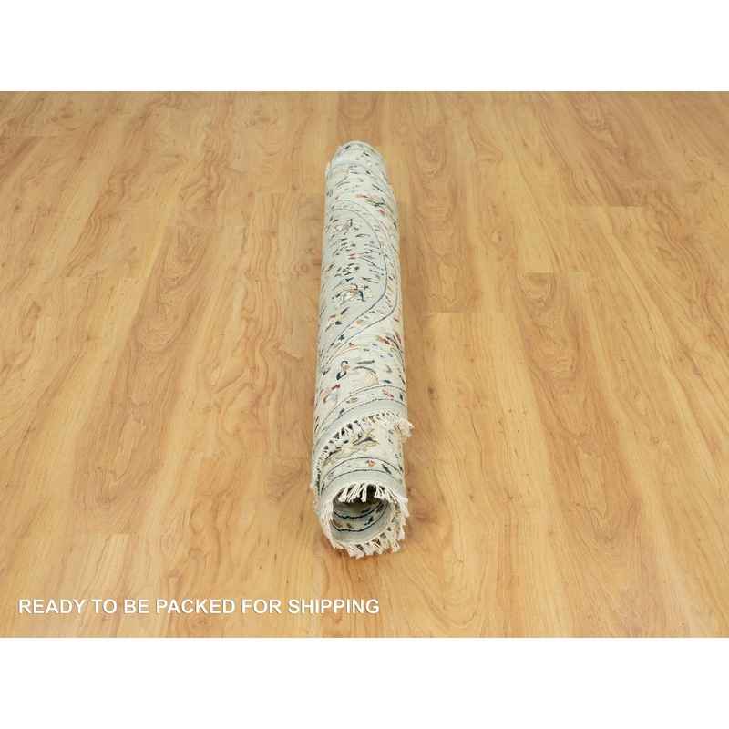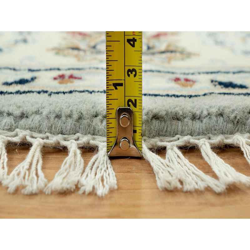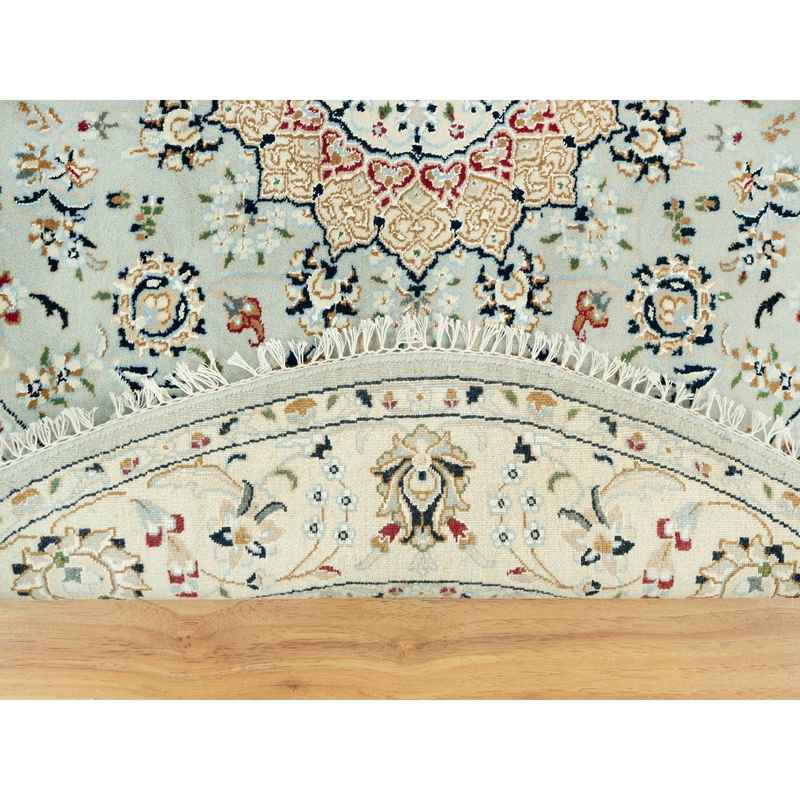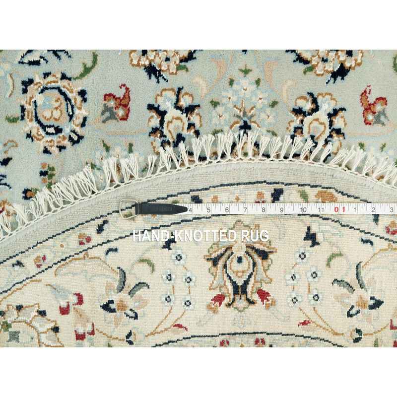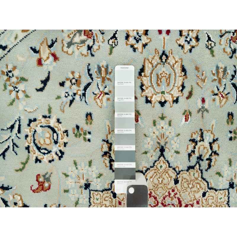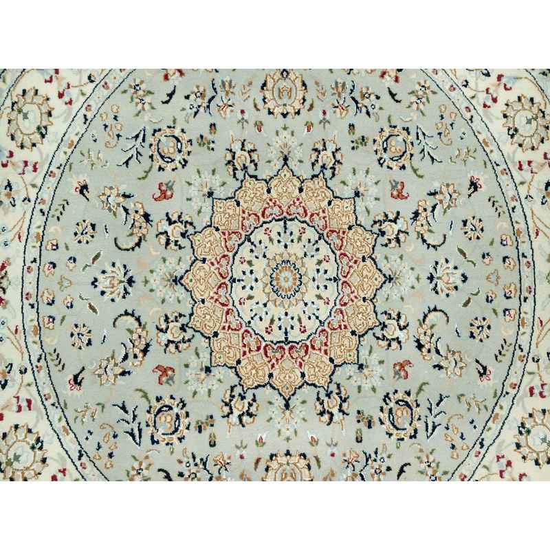 5’x5′ Spring Meadow Gray, Hand Knotted Nain with Center Medallion Flower Design, Soft Wool, Round Oriental Rug Sh90435
