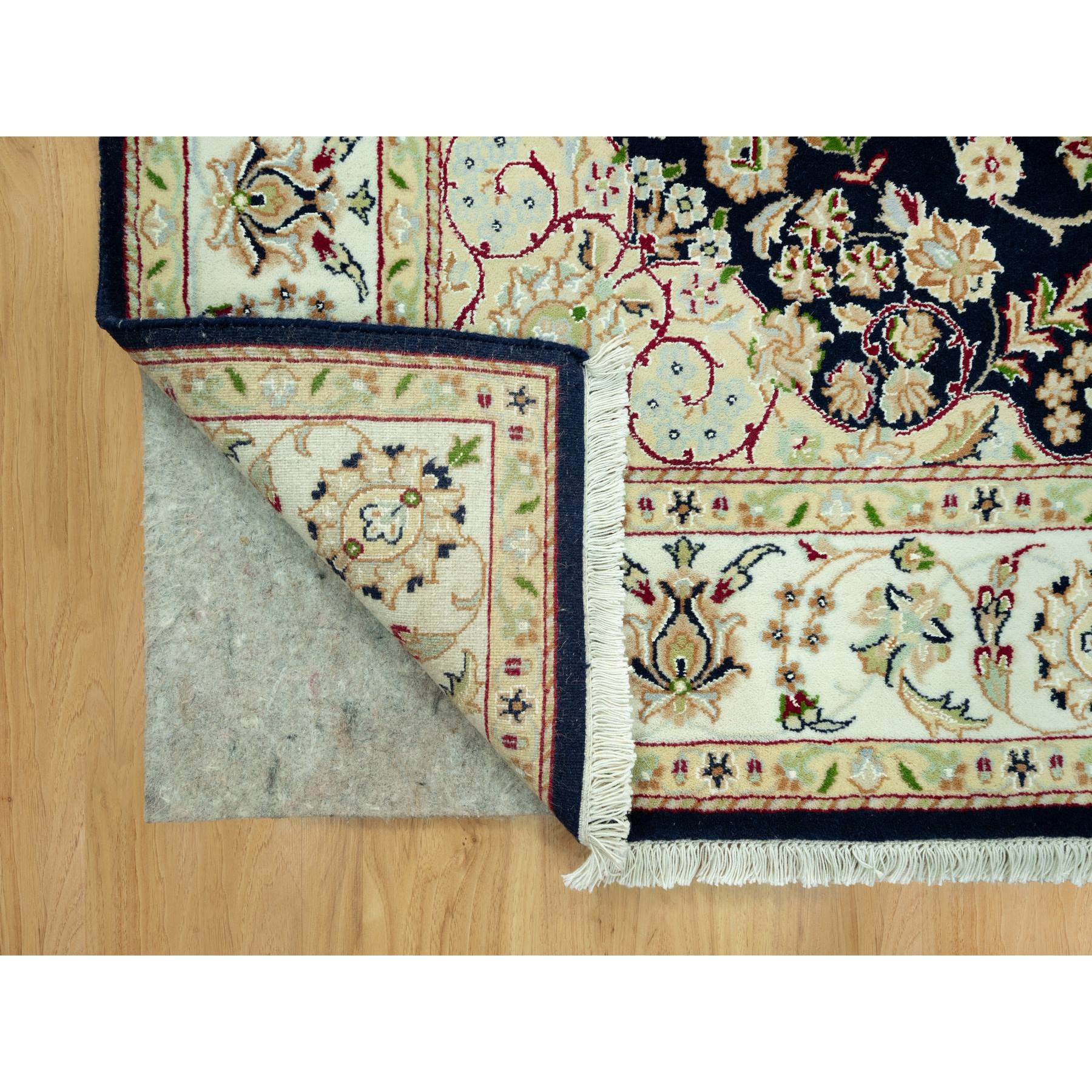 5’x7′ Hague Blue With Cornsilk Corners, Nain Hand Knotted Center Large Medallion Flower Design, Organic Wool, Oriental Rug Sh90493