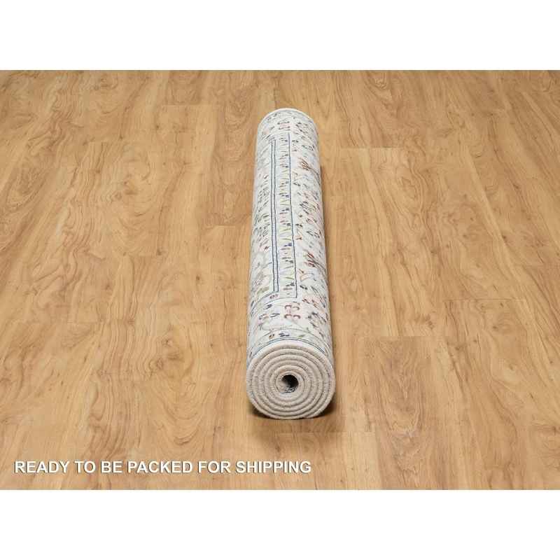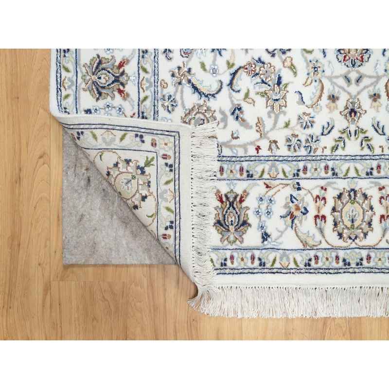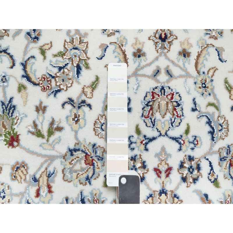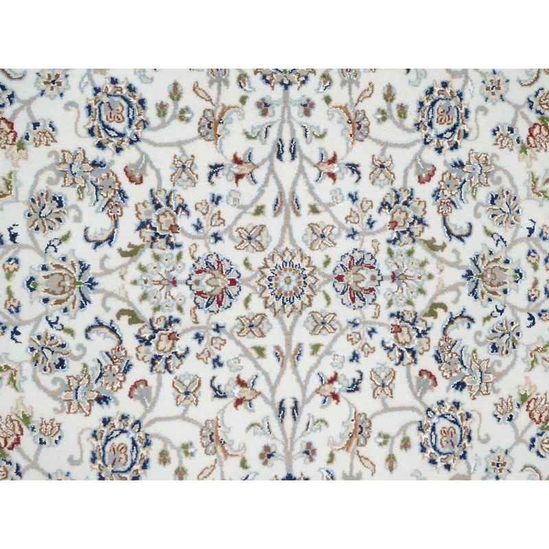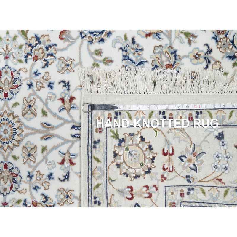 5’x7′ Natural White, Organic Wool, Nain All Over Floral Design, Hand Knotted, 250 KPSI, Oriental Rug Sh90876