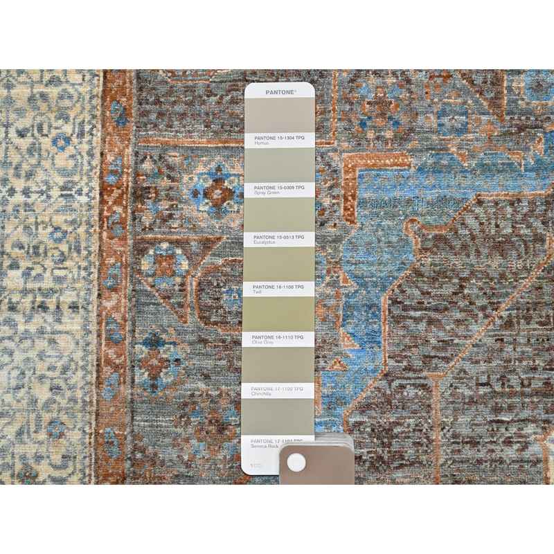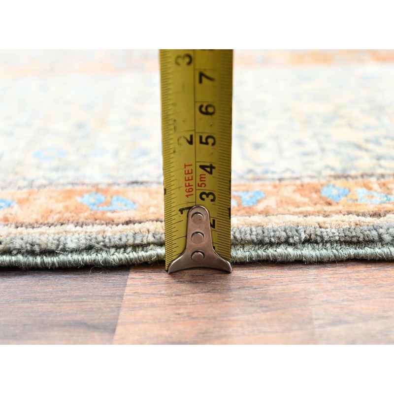 5’x7’3″ Twill Green, Natural Dyes, Hand Knotted 200 KPSI, Shiny Soft Wool, 14th Century Mamluk Dynasty With Geometric Design, Oriental Rug Sh86745
