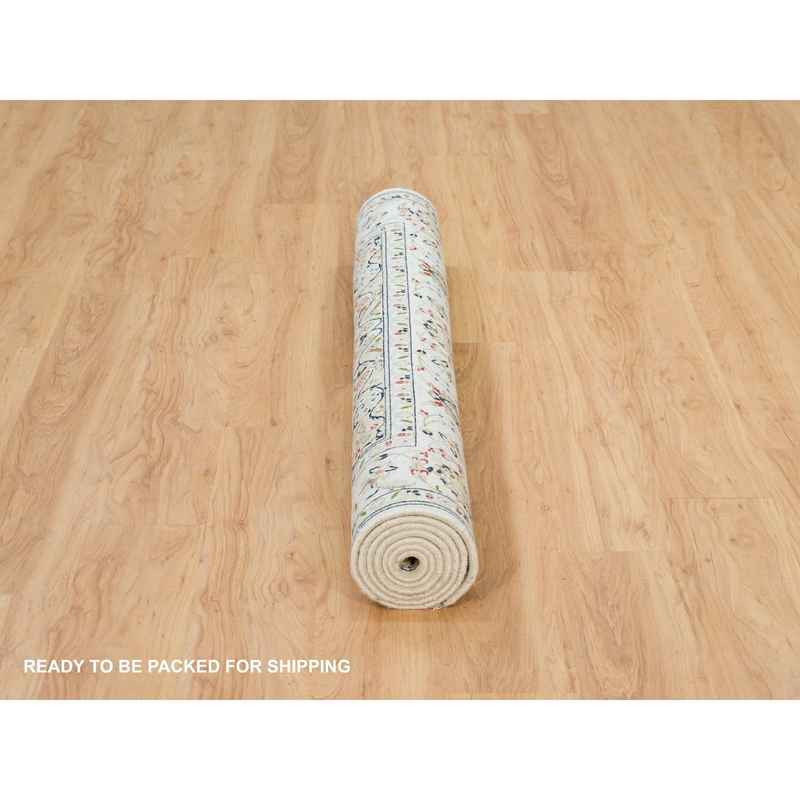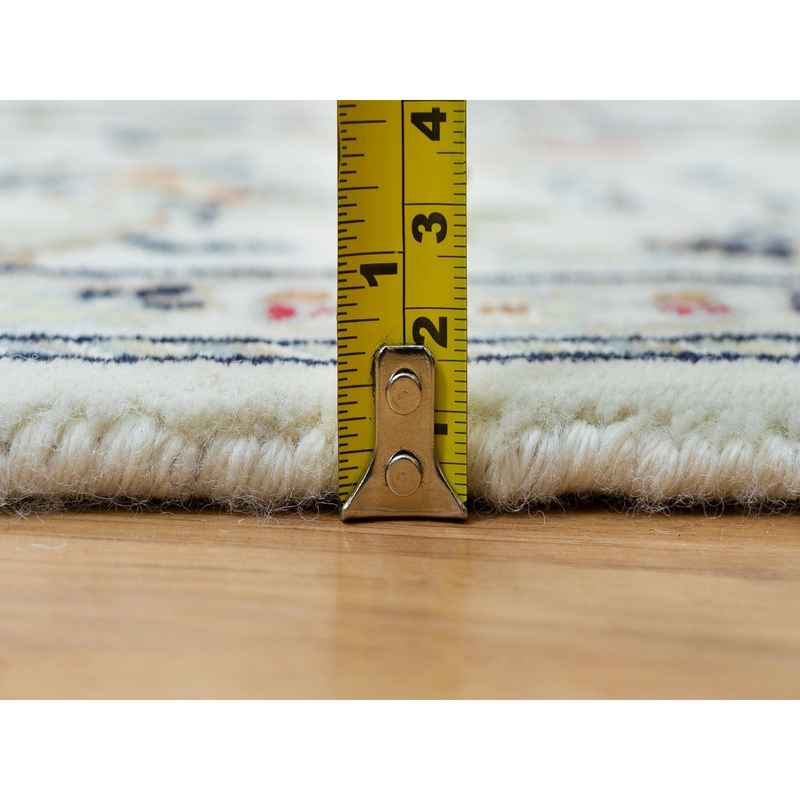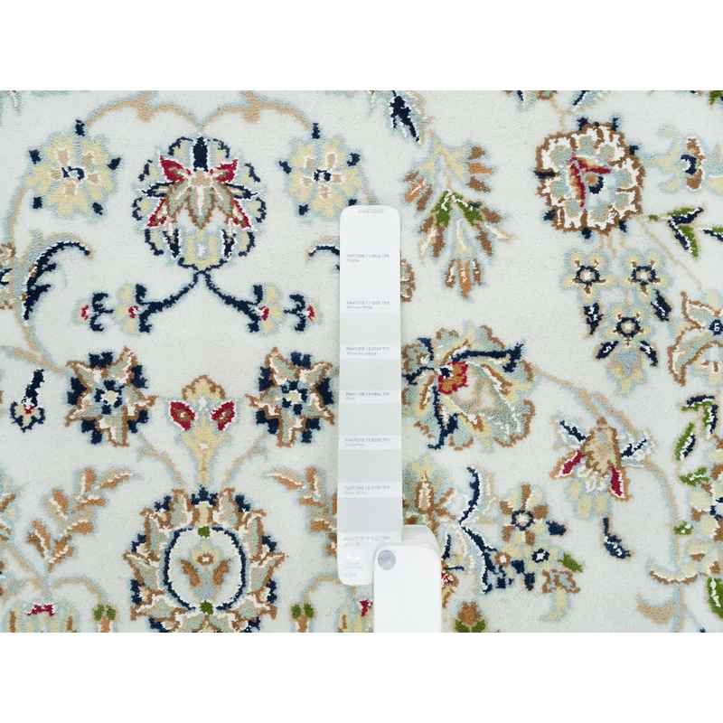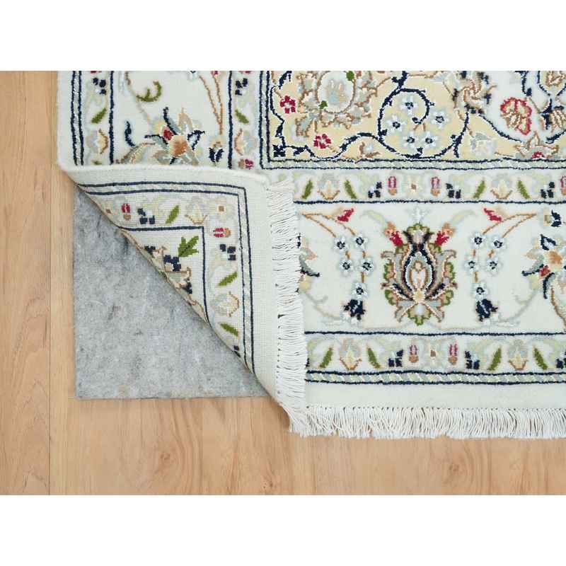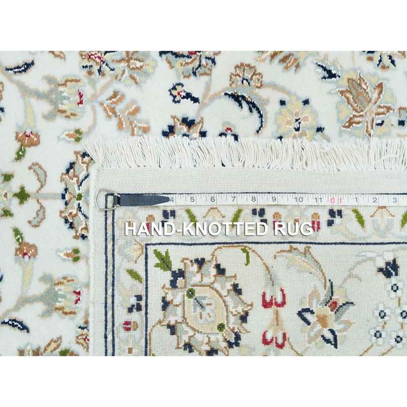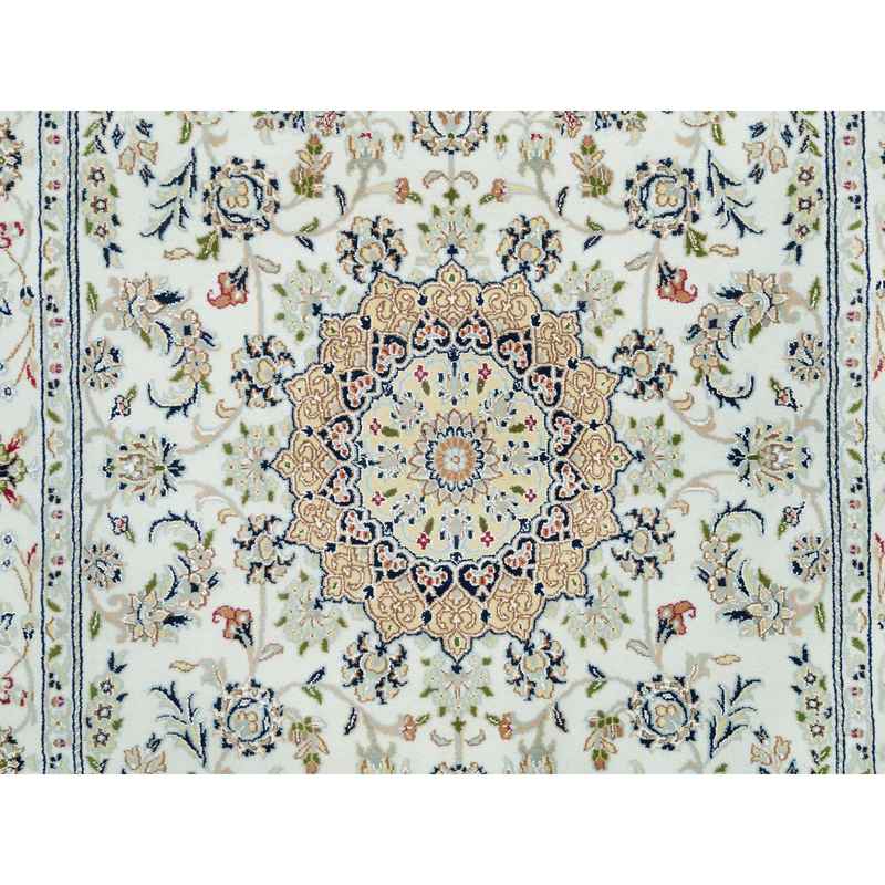 5’x8′ Powder White, Hand Knotted, Nain with Center Medallion Flower Design, 250 KPSI, Natural Wool, Oriental Rug Sh90015