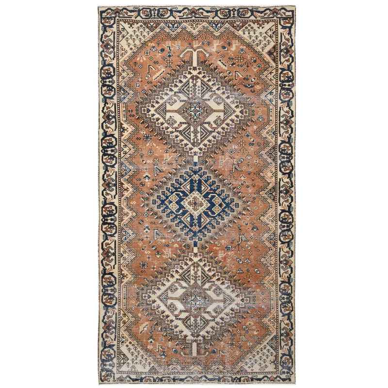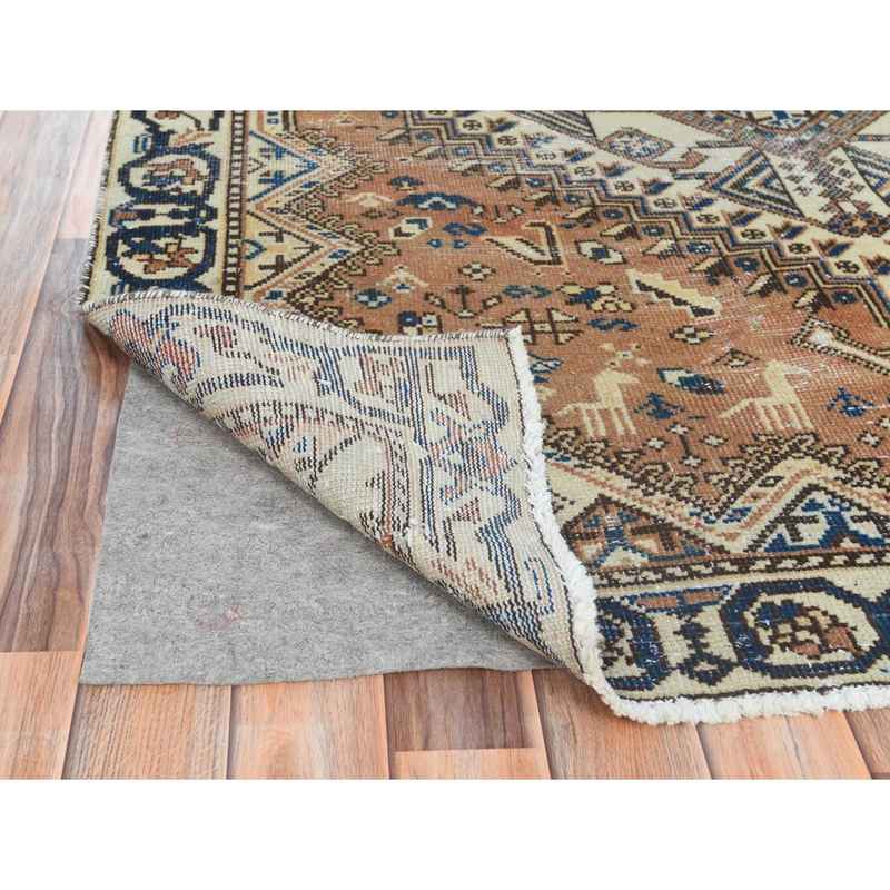 5’x9’8″ Hazelnut Brown, Hand Knotted Vintage Persian Bakhtiar with Small Animal Figurines, Cropped Thin Distressed Look Worn Wool, Wide Runner Oriental Rug Sh61922