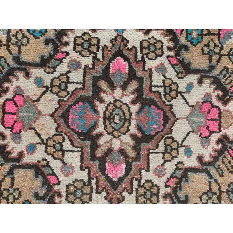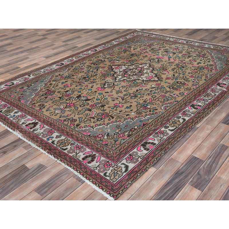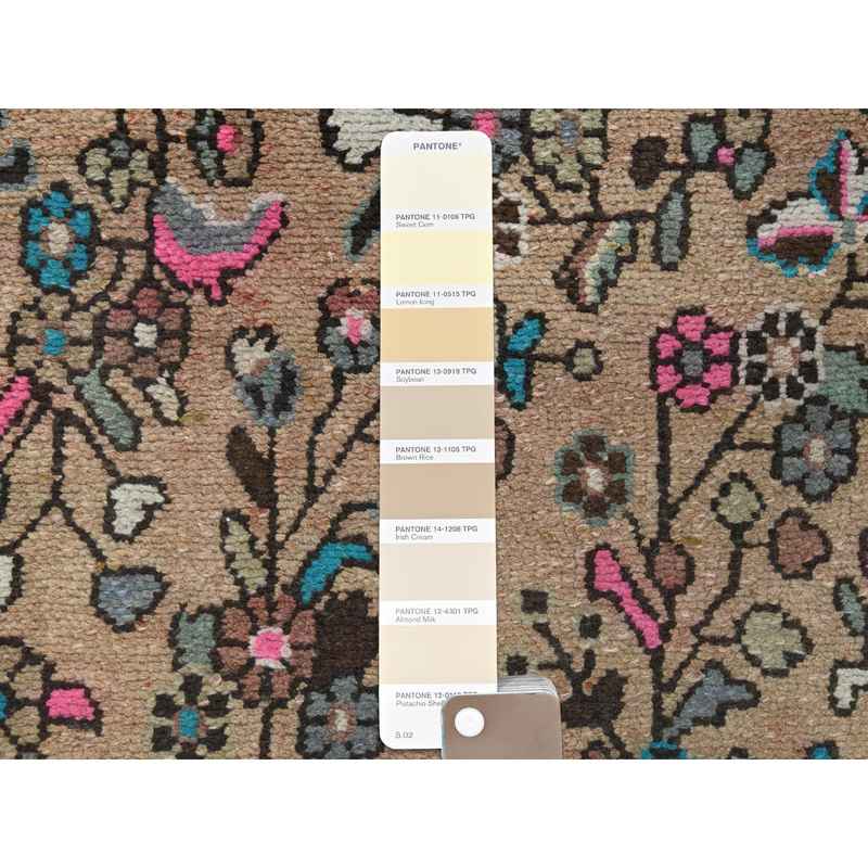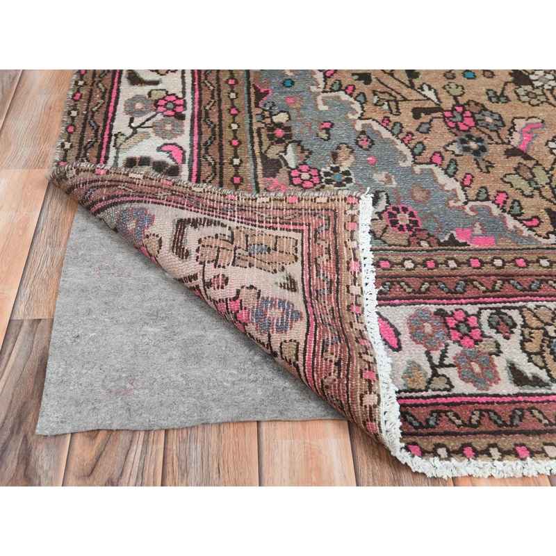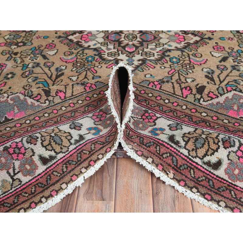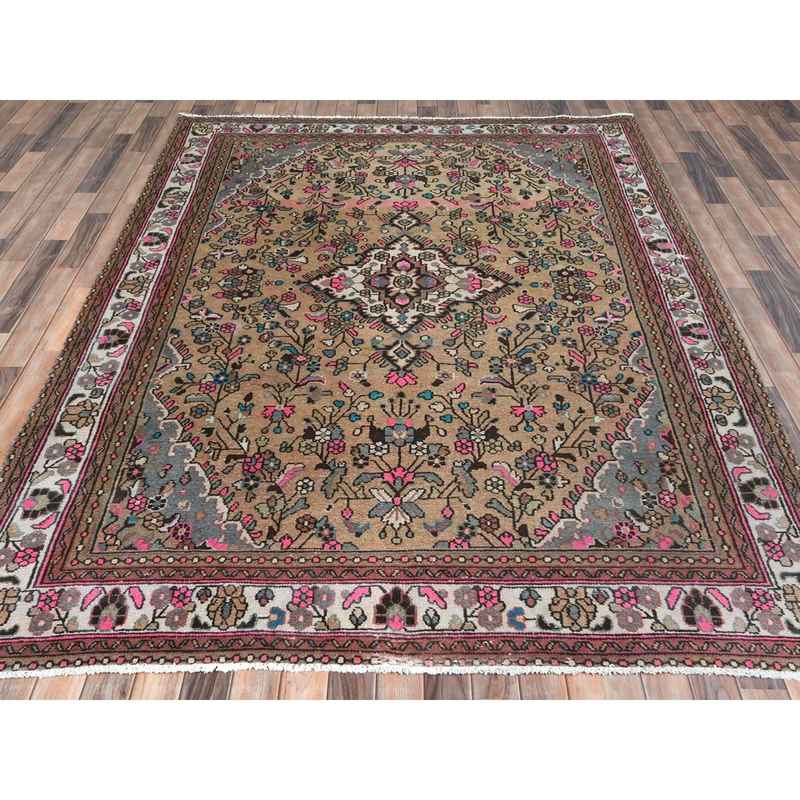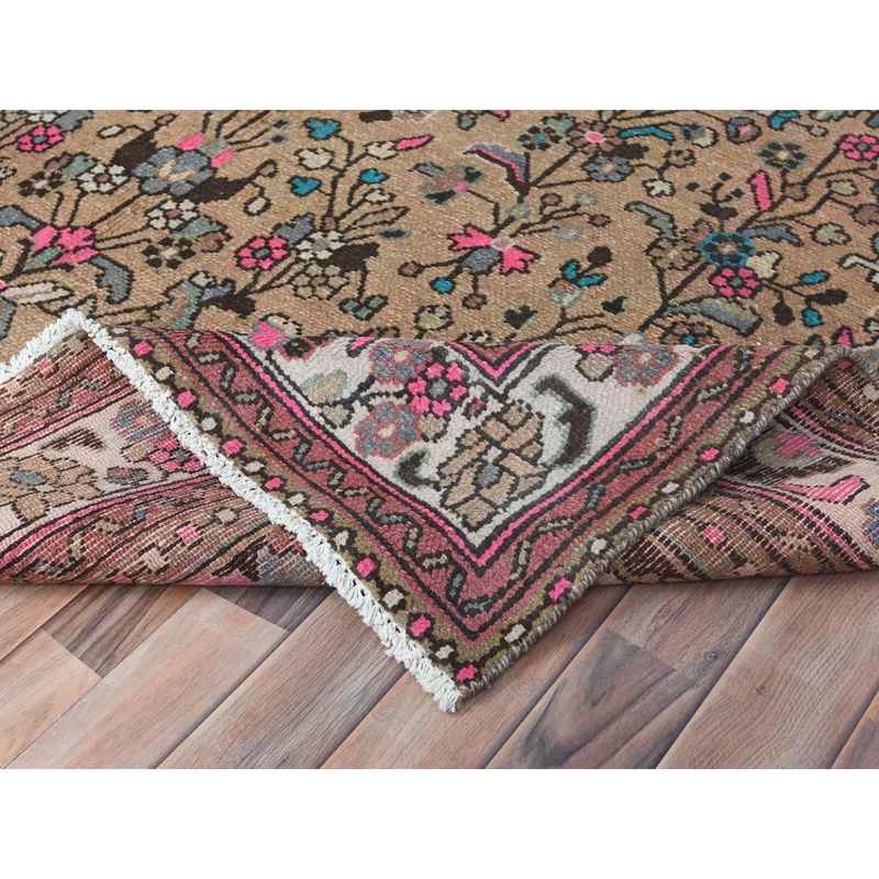 6’10″x9’9″ Mocha Brown, Hand Knotted Vintage Persian Hamadan, Sheared Low Distressed Look Worn Wool, Oriental Rug Sh81167