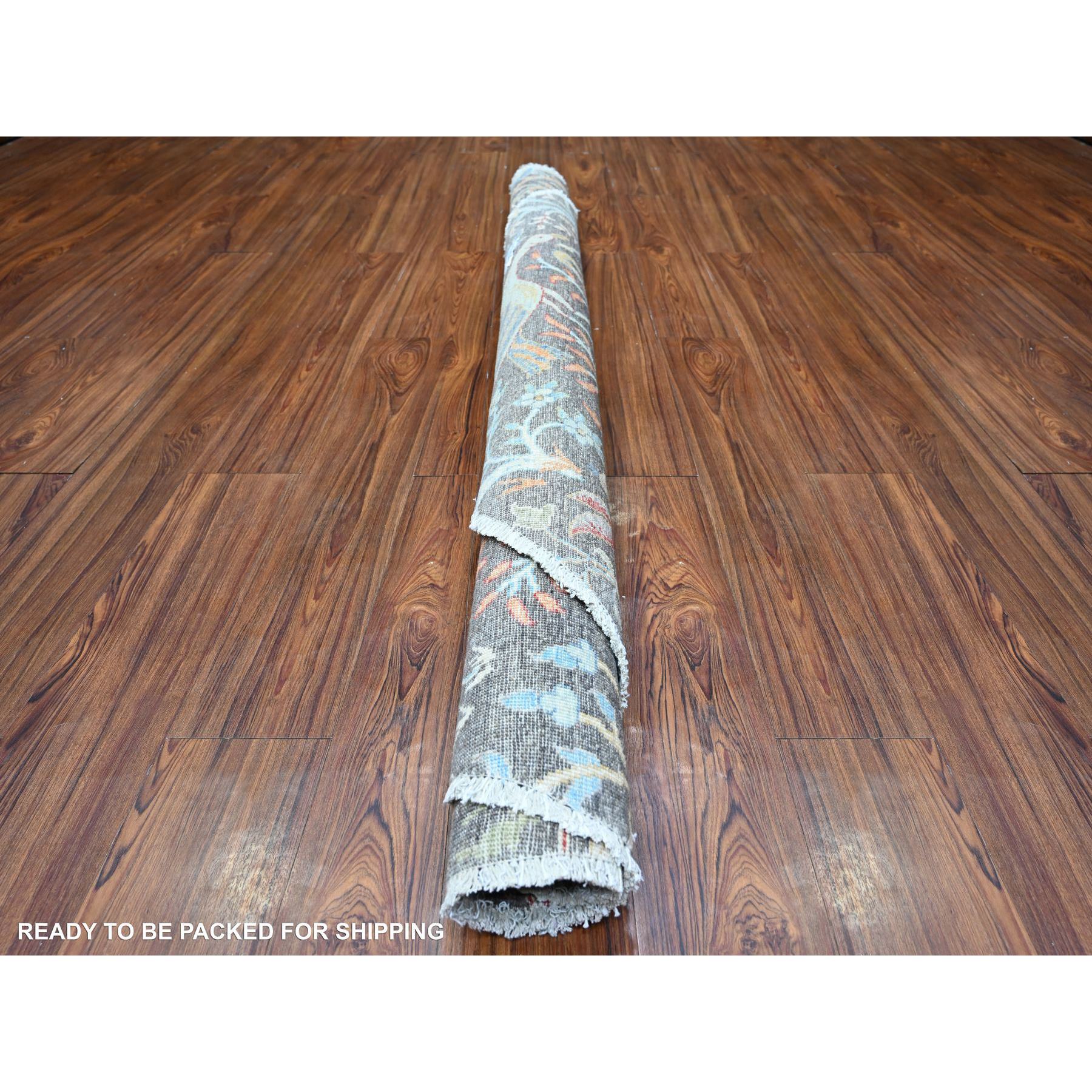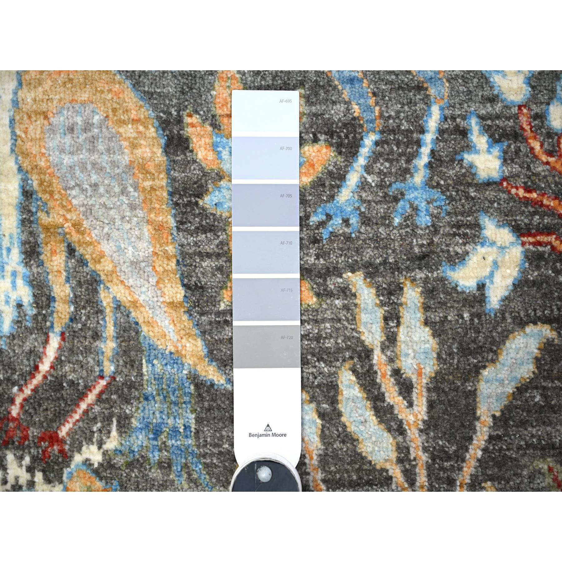 6’1″x6’1″ Dovetail Gray, Hand Knotted, Vegetable Dyes, Organic Wool, Afghan Peshawar with Birds of Paradise, Round, Oriental Rug Sh88211