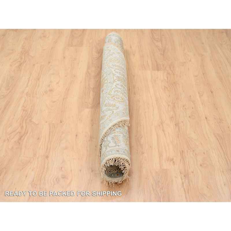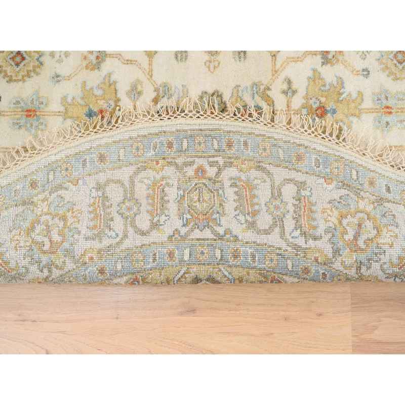 6’1″x6’1″ Hand Knotted Ivory with Soft Colors Karajeh Design Soft Pure Wool Oriental Round Rug Sh63419