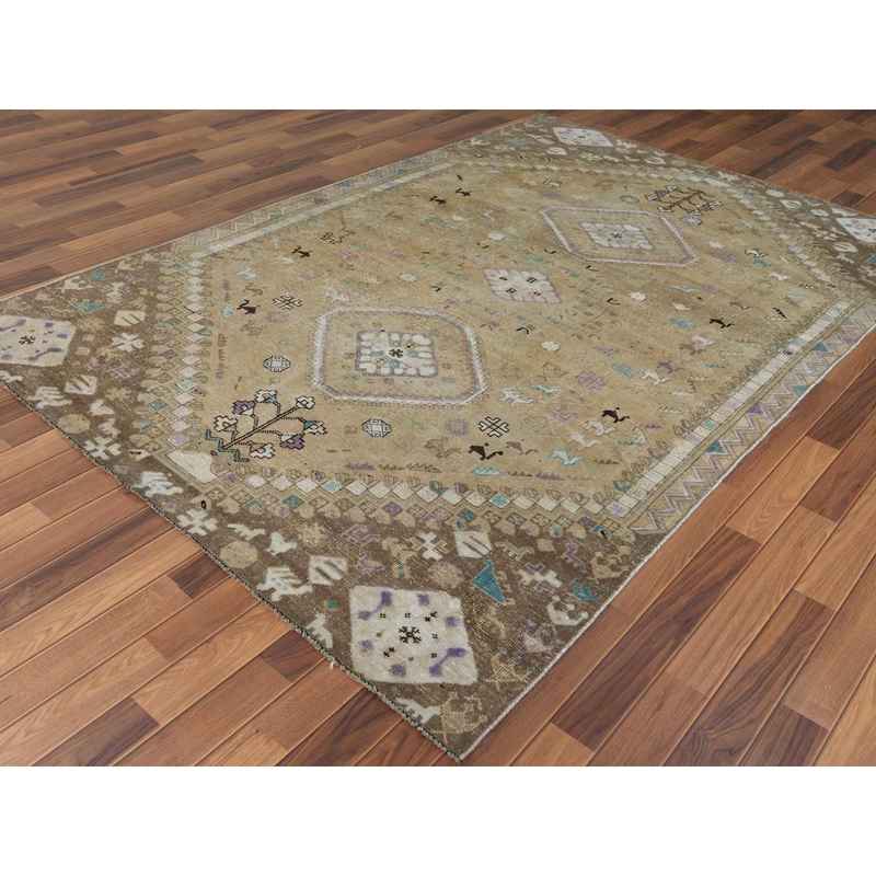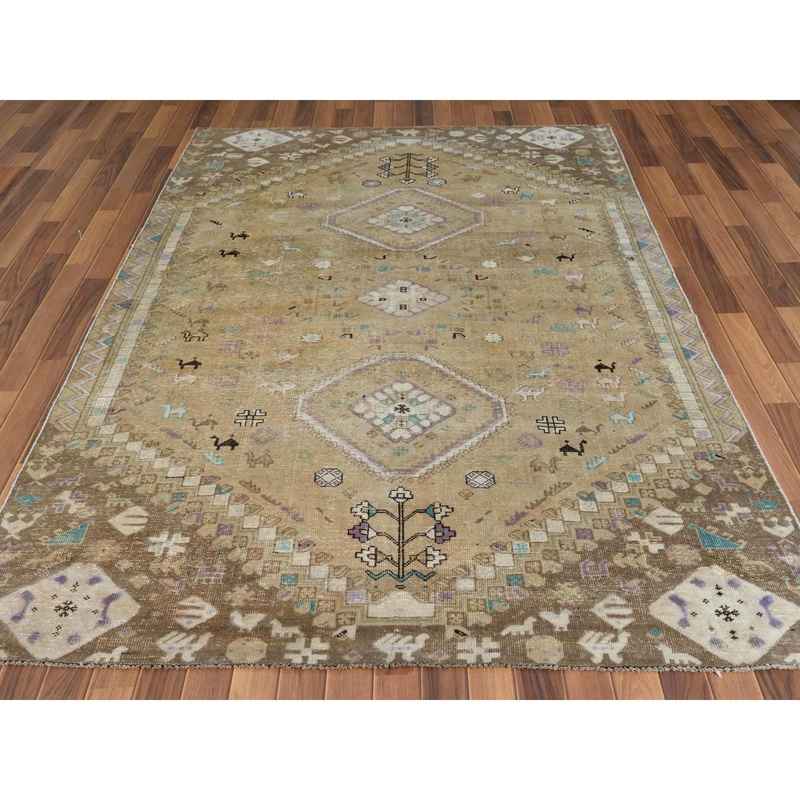 6’1″x9′ Bohemian Persian Shiraz Pure Wool Beige Semi Antique Distressed Hand Knotted Clean Oriental Rug Sh57923
