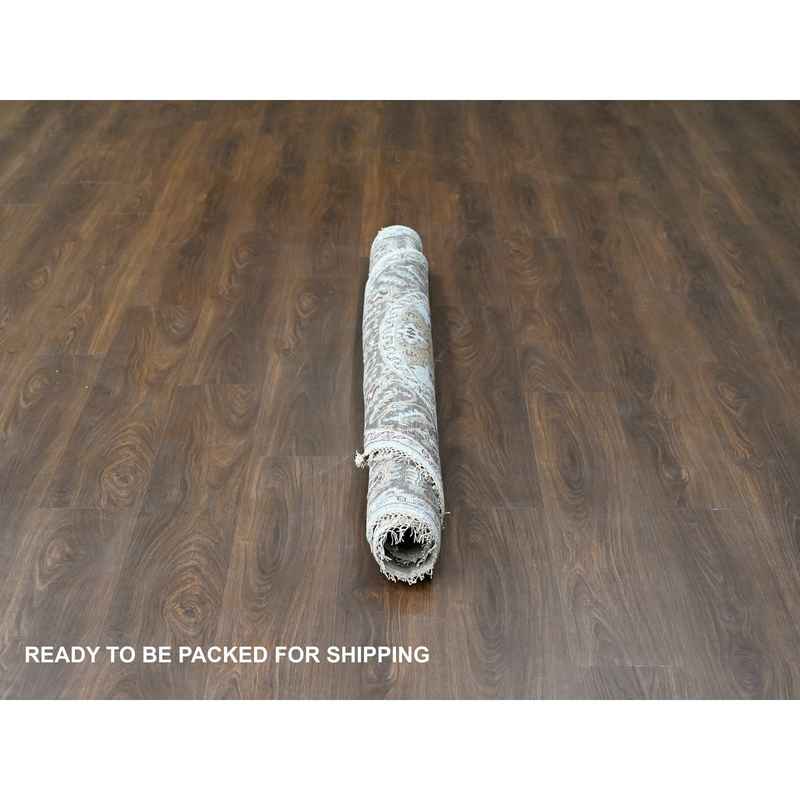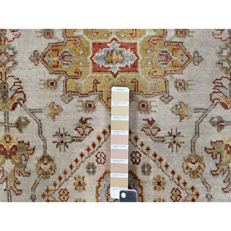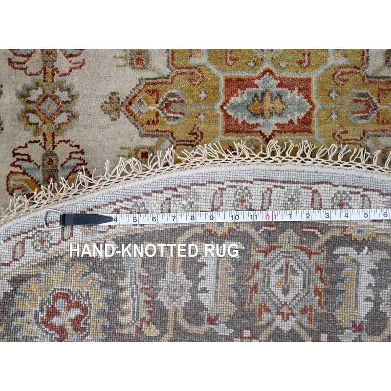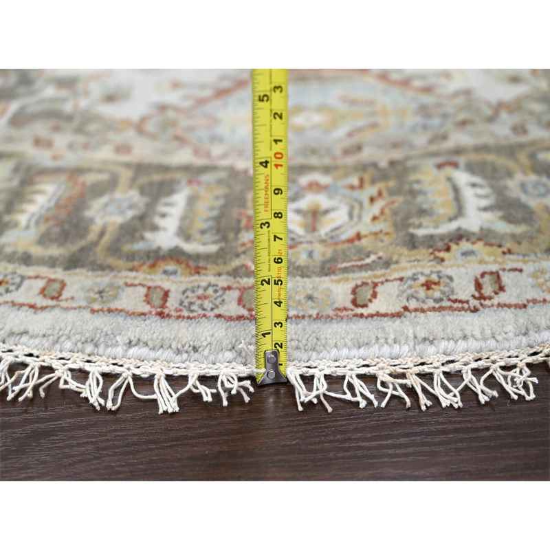 6’2″x6’2″ Goose Gray, Karajeh Design with Tribal Medallions, Pure Wool, Hand Knotted, Round Oriental Rug Sh84701
