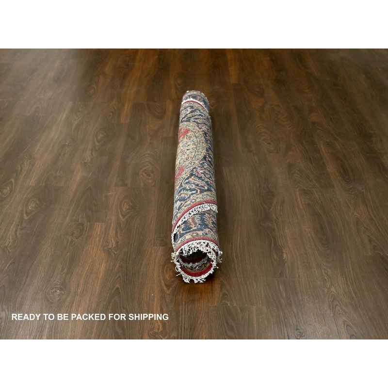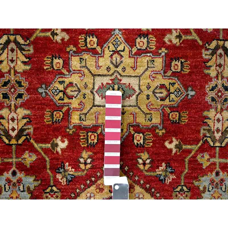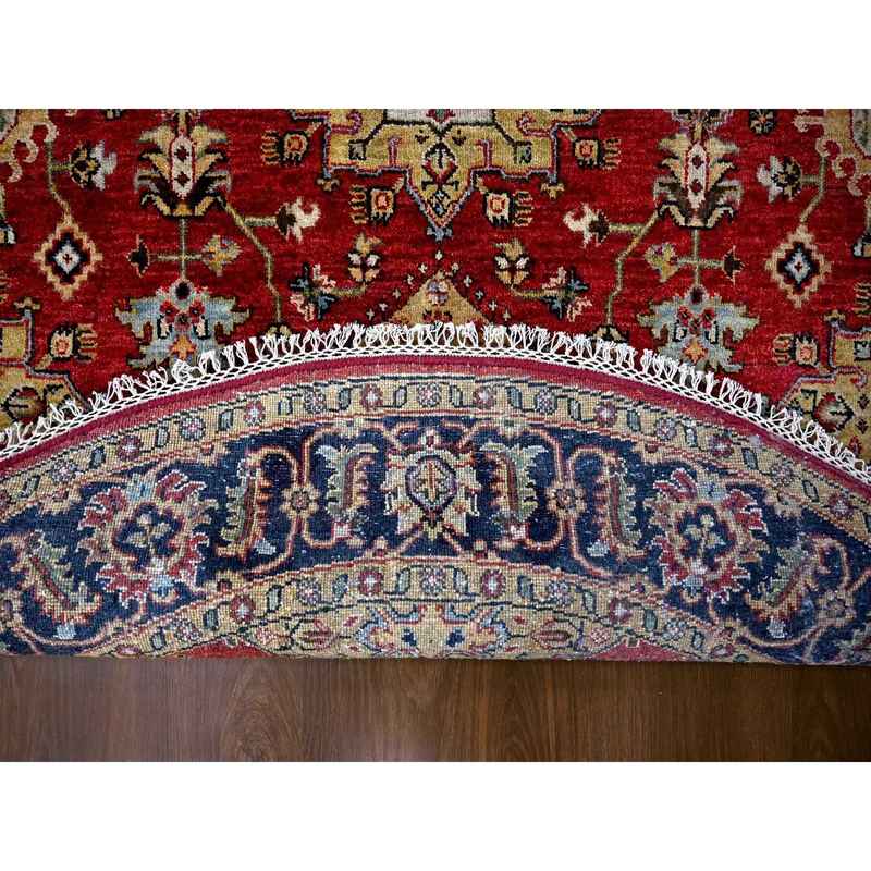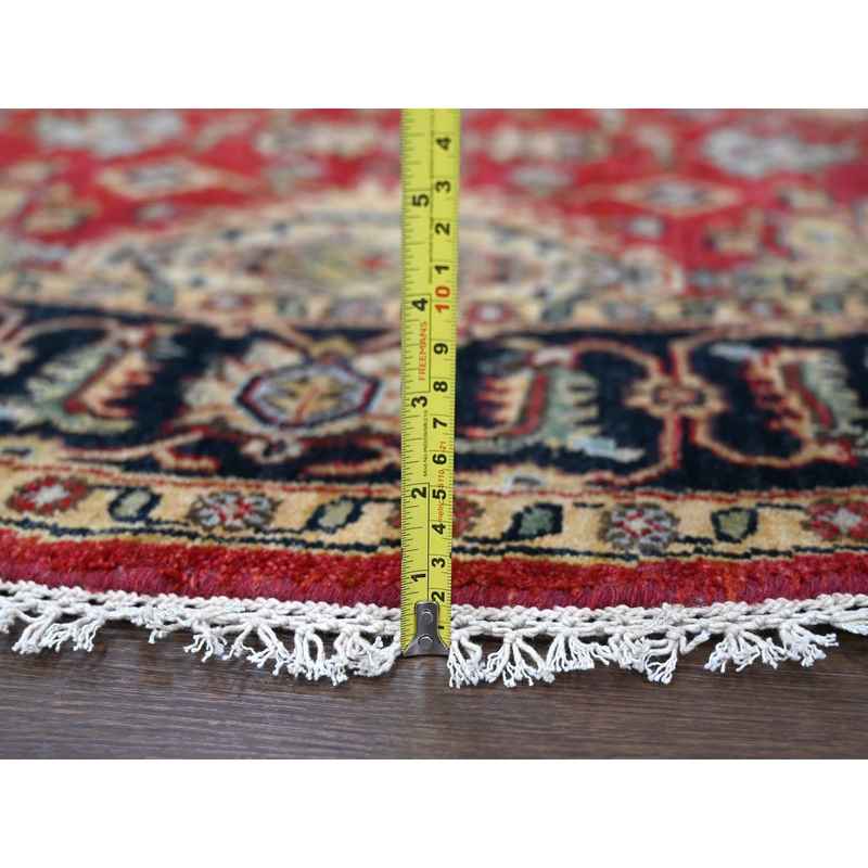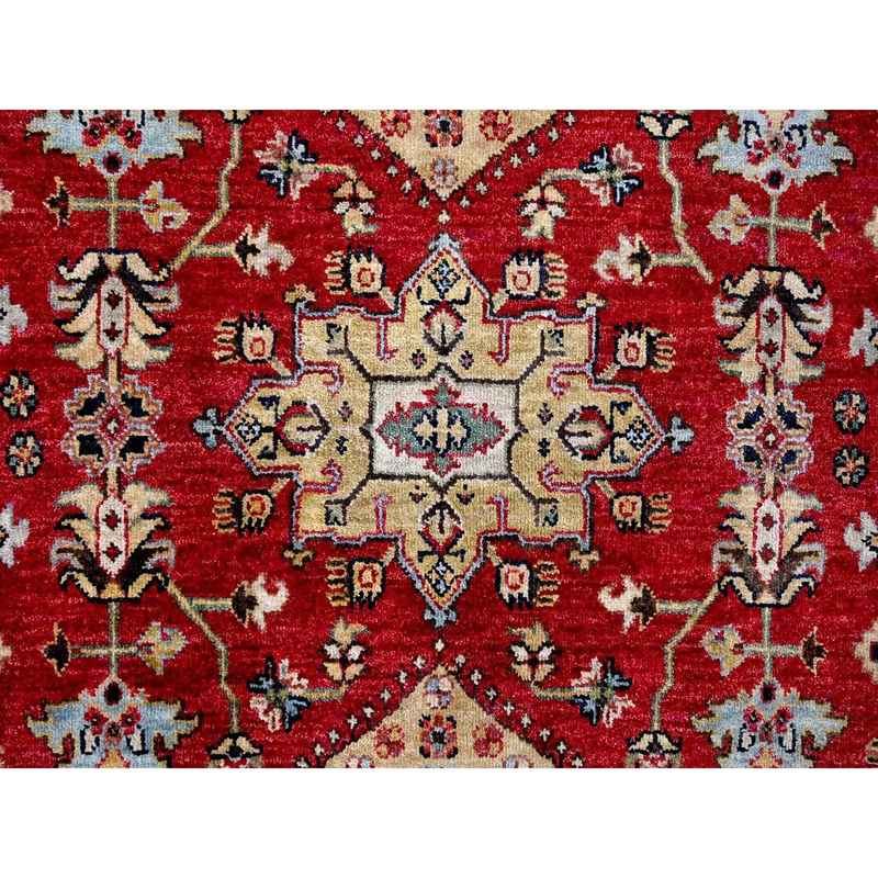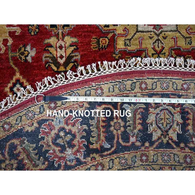 6’2″x6’2″ Maroon Red, Karajeh Design with Geometric Medallions, Pure Wool, Hand Knotted, Round Oriental Rug Sh84661