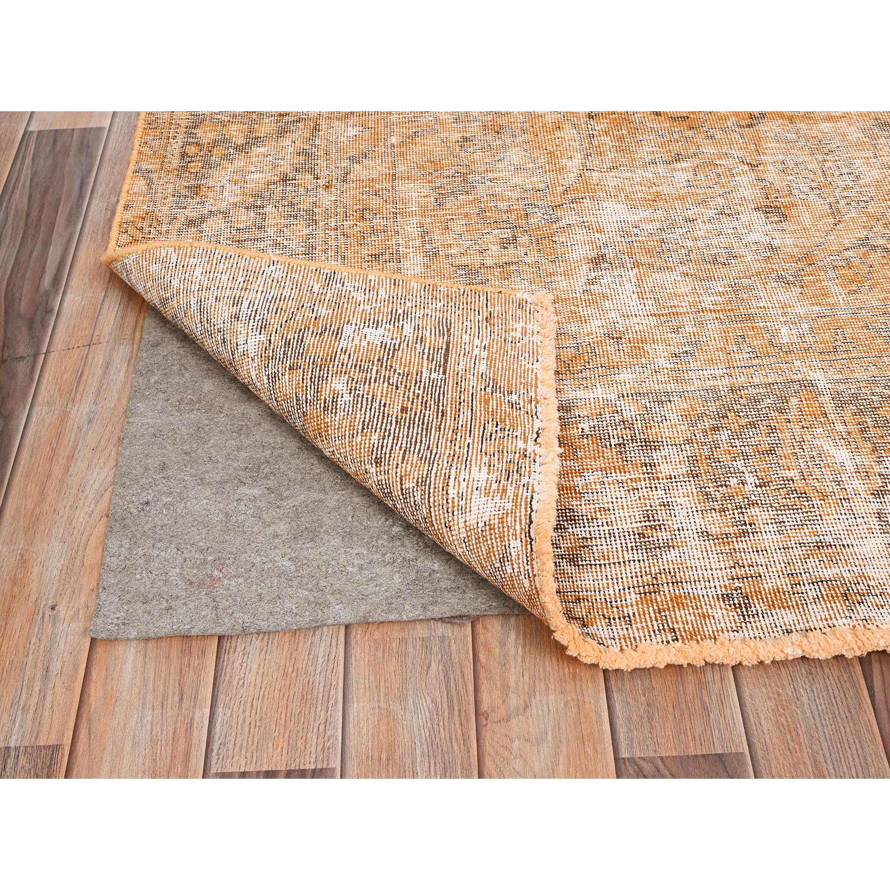 6’5″x10′ Carrot Orange, Shaved Down, Distressed Look, Extra Soft Wool, Hand Knotted, Vintage Persian Tabriz with Faded Medallion Design, Oriental Rug Sh85542