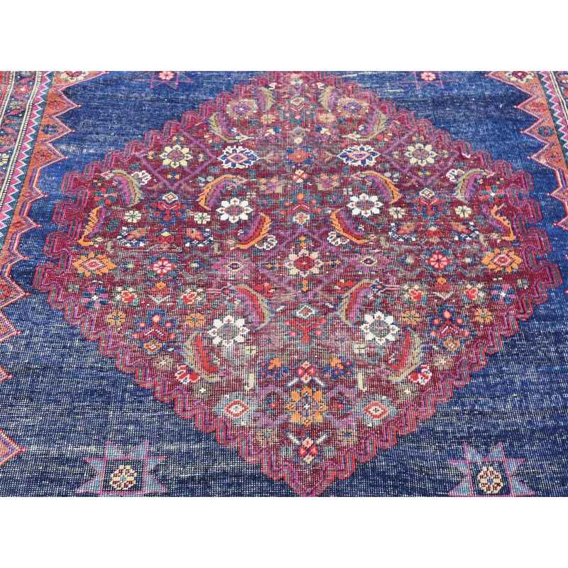 6’5″x14′ Navy Blue, Antique Northwest Persian, Pure Wool Hand Knotted Distressed Worn Down, Wide Runner Oriental Rug Sh80229