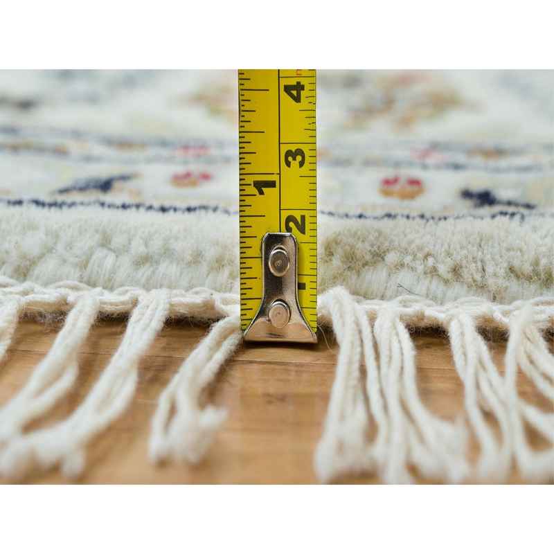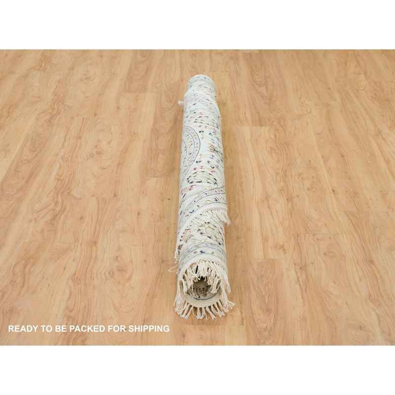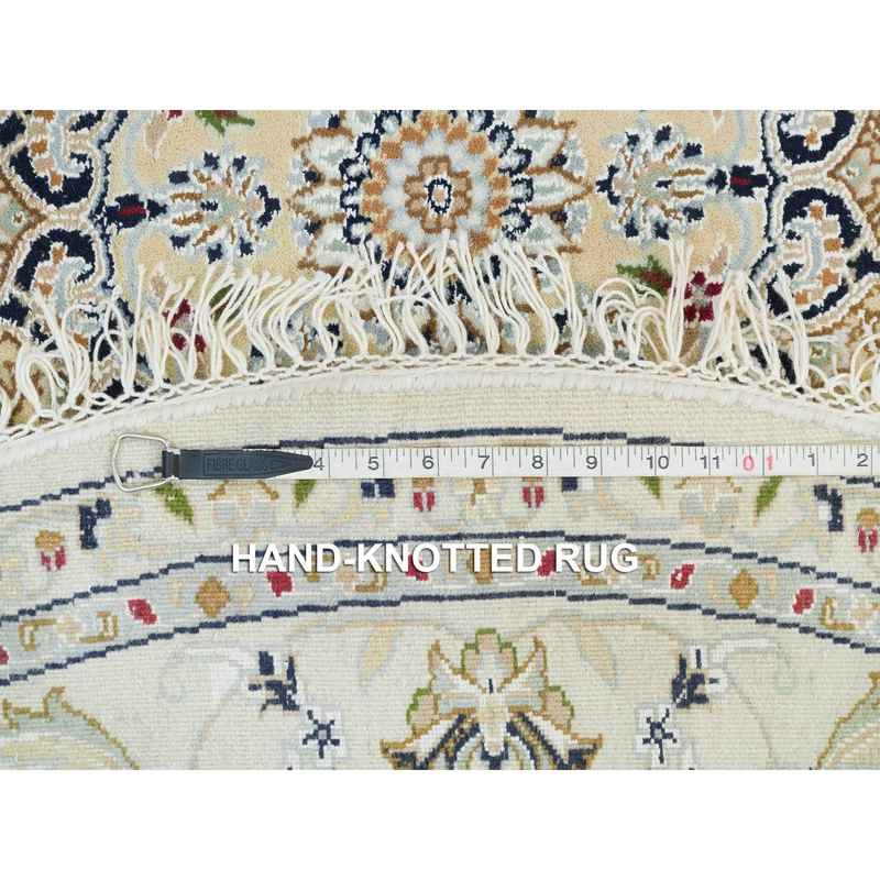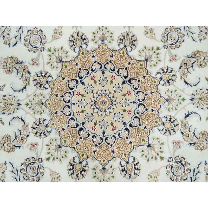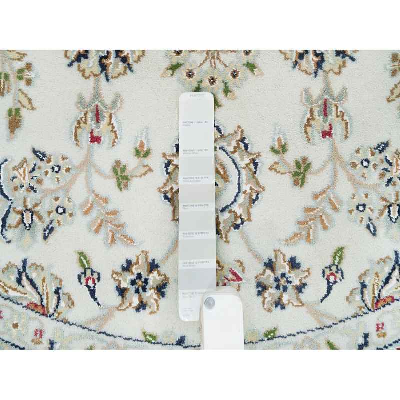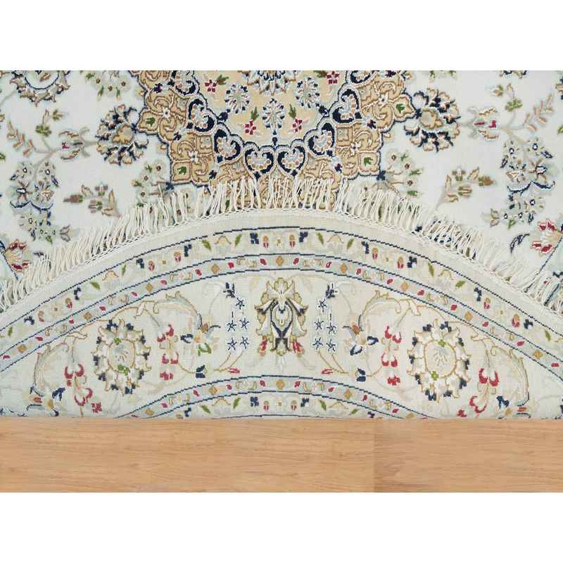 6’5″x6’5″ Powder White, Organic Wool, Hand Knotted, Nain with Center Medallion Flower Design, 250 KPSI, Round Oriental Rug Sh90004