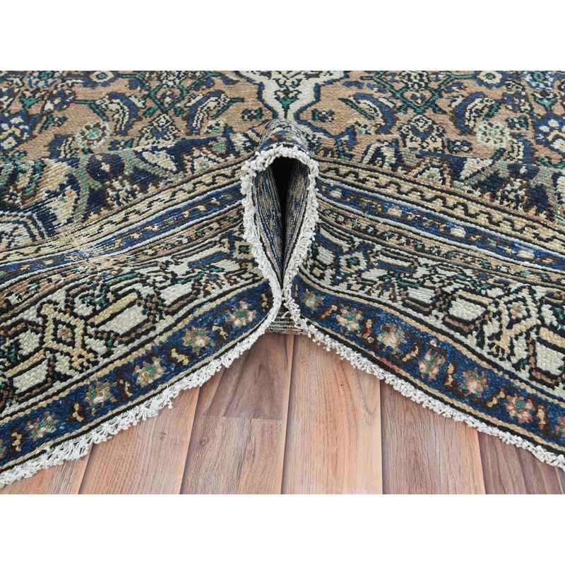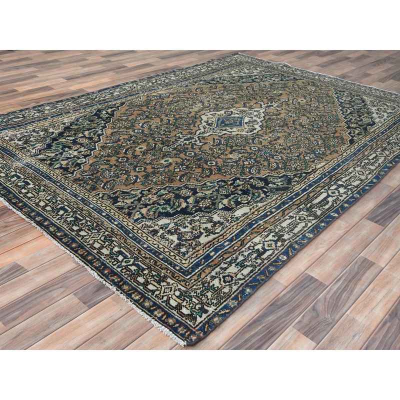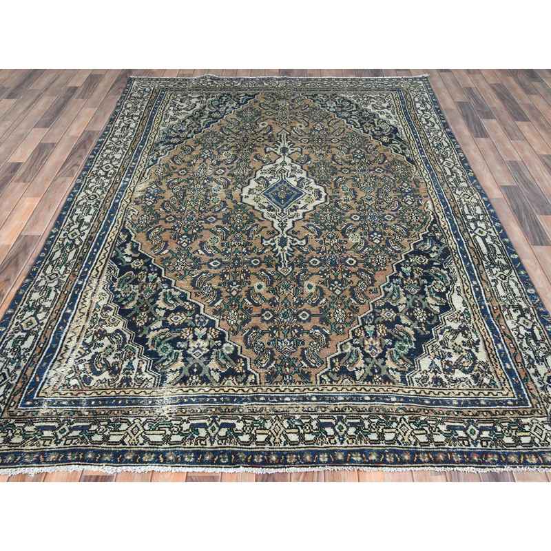 6’6″x9’6″ Brown, Vintage Persian Hamadan Cropped Thin, Distressed Look Worn Wool Hand Knotted, Oriental Rug Sh81194