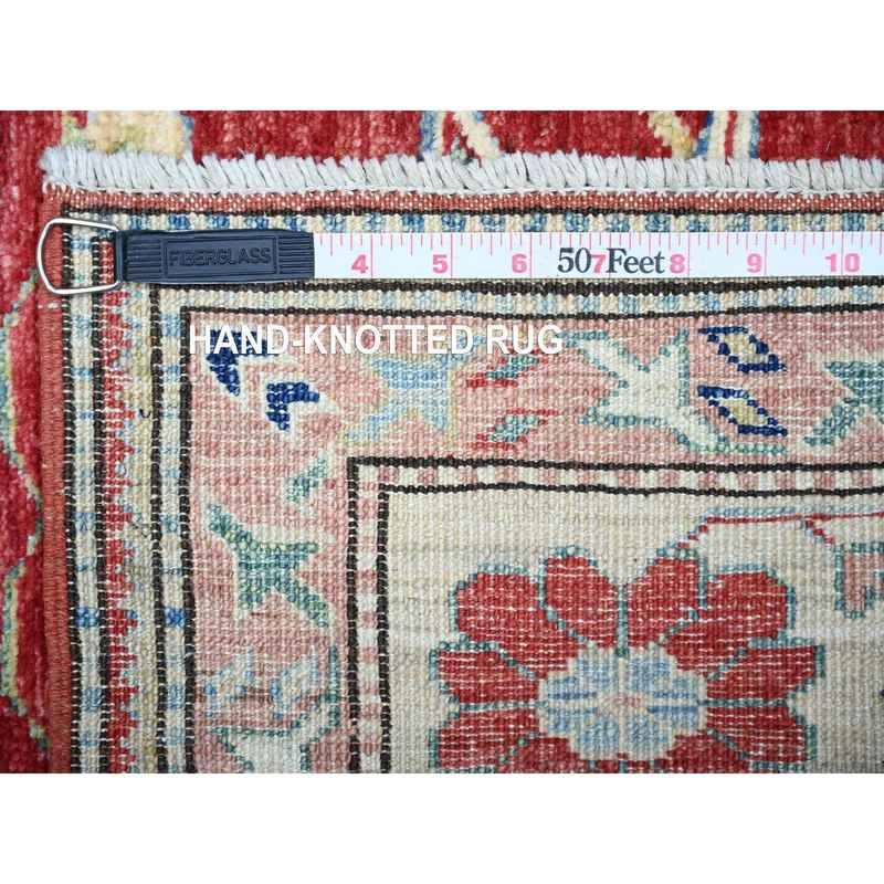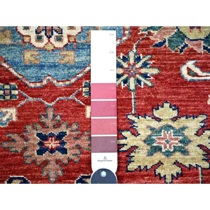 6’8″x9’10” Sanguine Red, Afghan Super Kazak with Geometric Gul Motifs, Vegetable Dyes, Extra Soft Wool Hand Knotted, Oriental Rug Sh74824