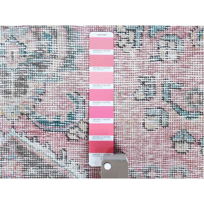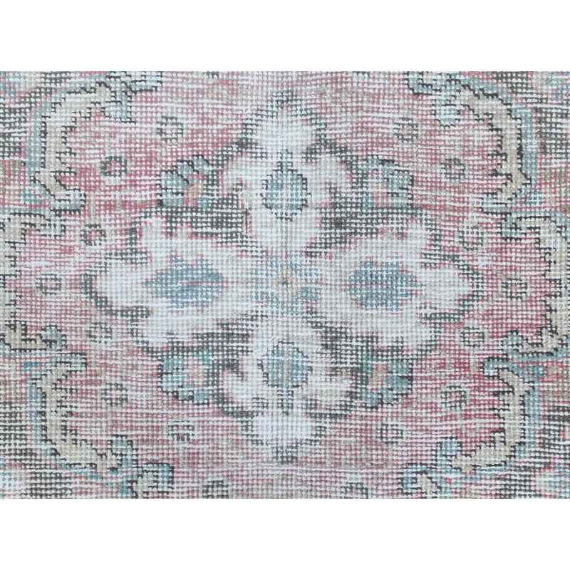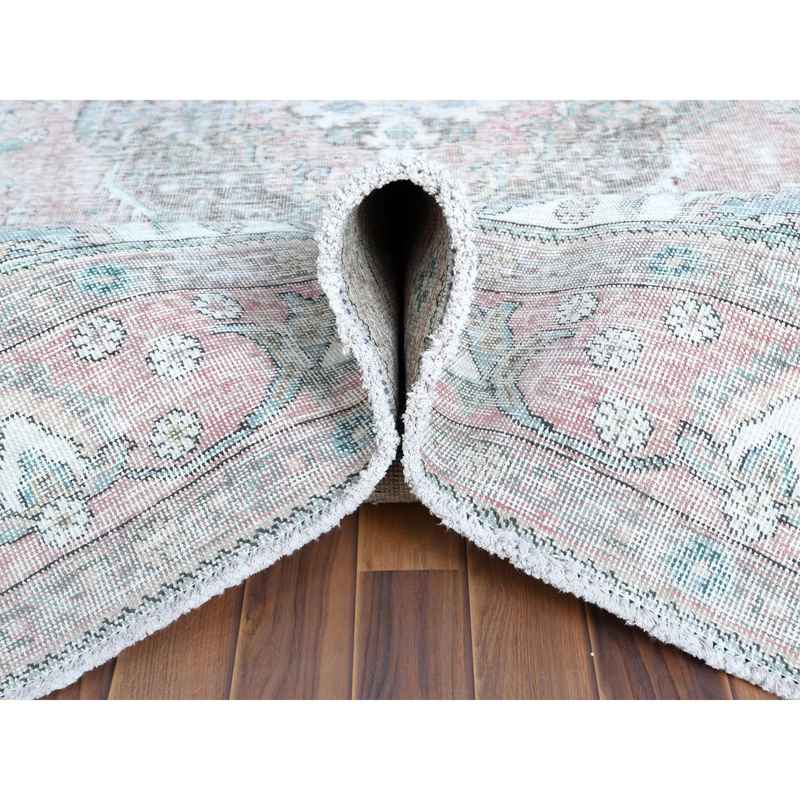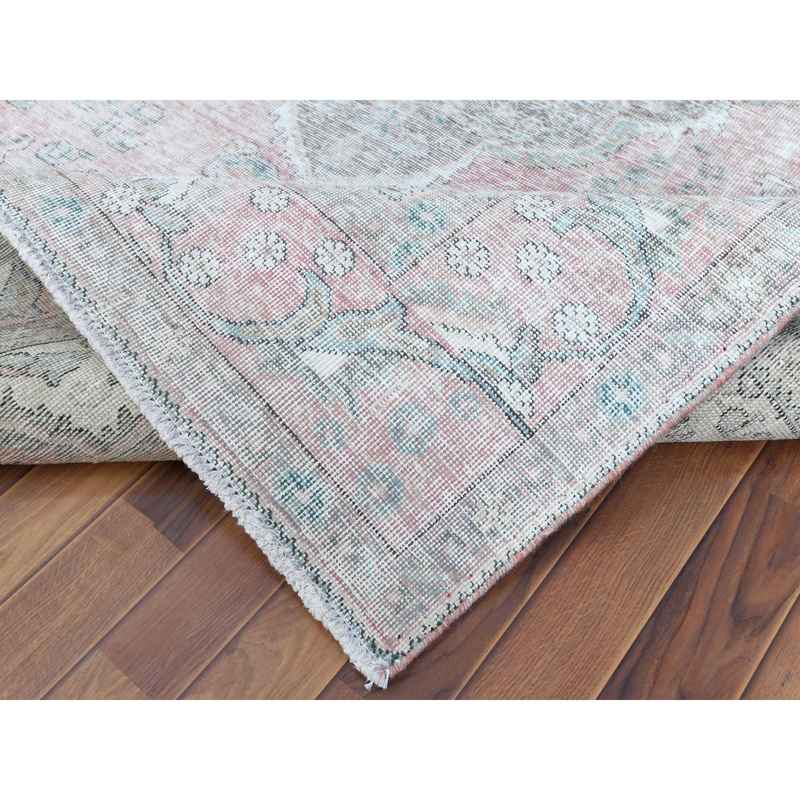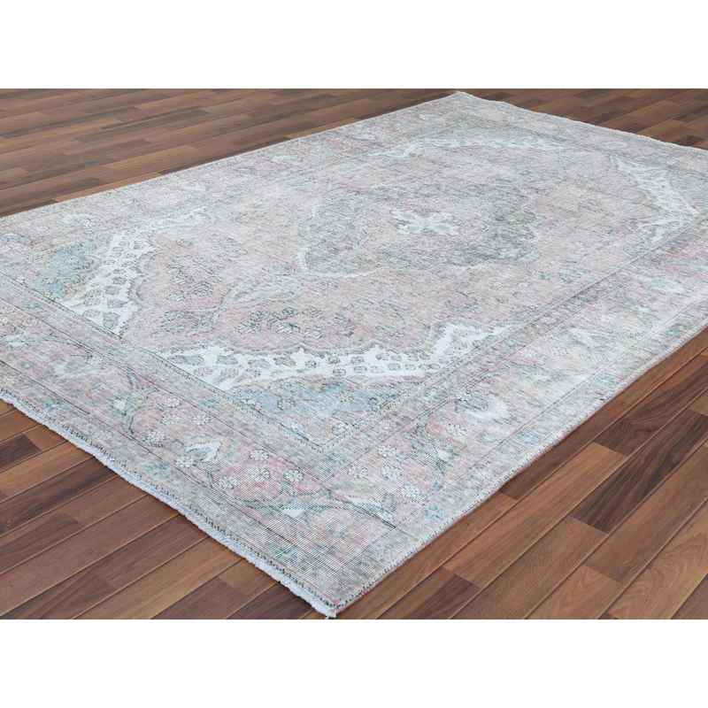 6’8″x9’8″ Red Clean Pure Wool Shabby Chic Worn Down Old Persian Tabriz Medallion Design Distressed Hand Knotted Oriental Rug Sh60183