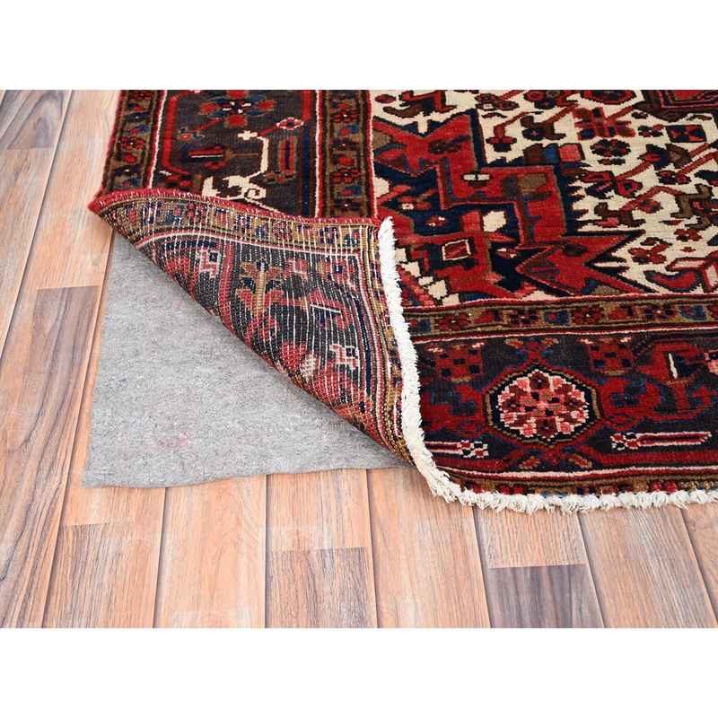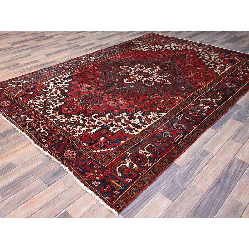 6’9″x9’6″ Tomato Tango Red, Vintage Heriz With Persian Design Soft Pile Hand Knotted, Professional Cleaned, Good Condition and Organic Wool Oriental Rug Sh86154